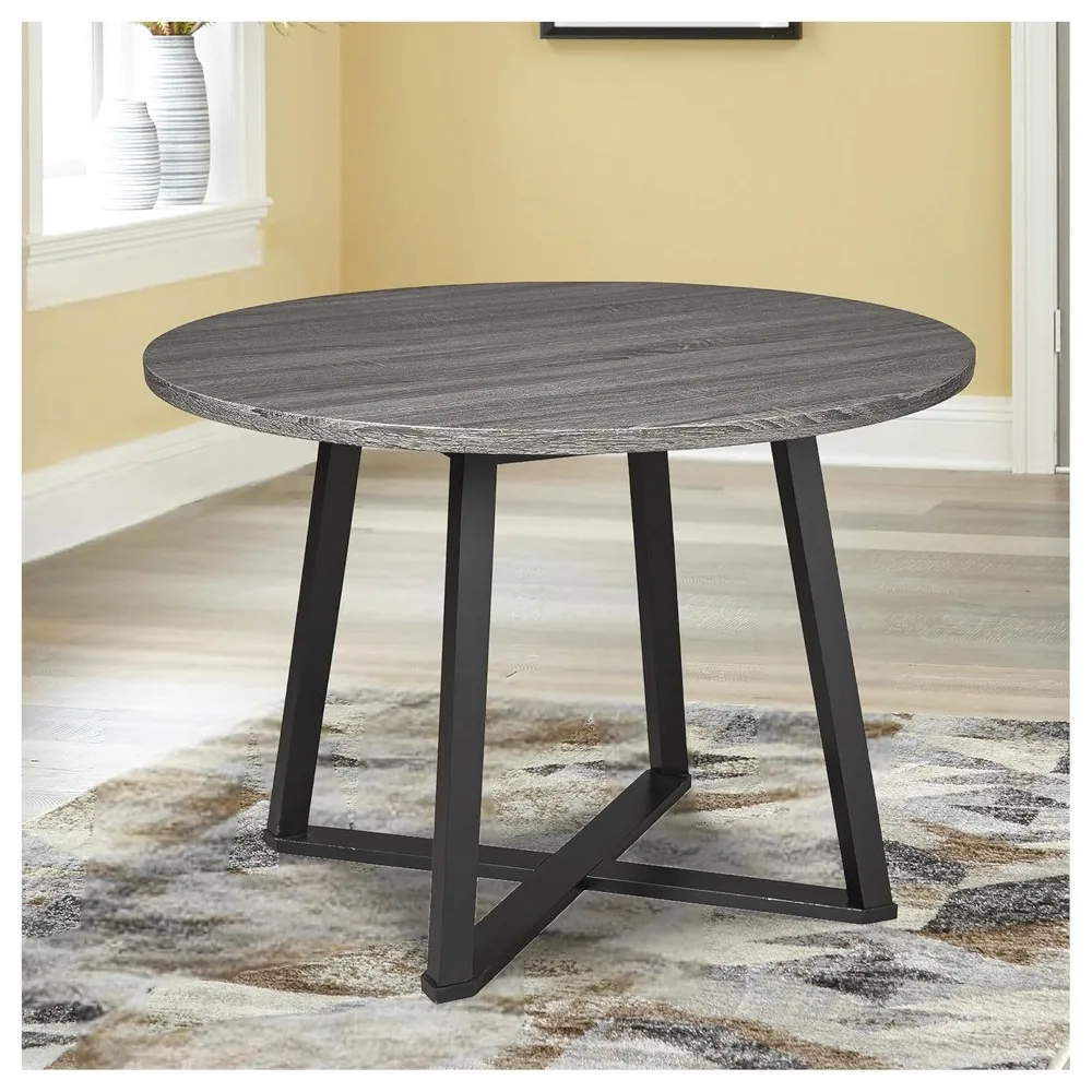 Ashley Centiar Mid-Century Modern Round Dining Table with Gray and Black Metal Legs