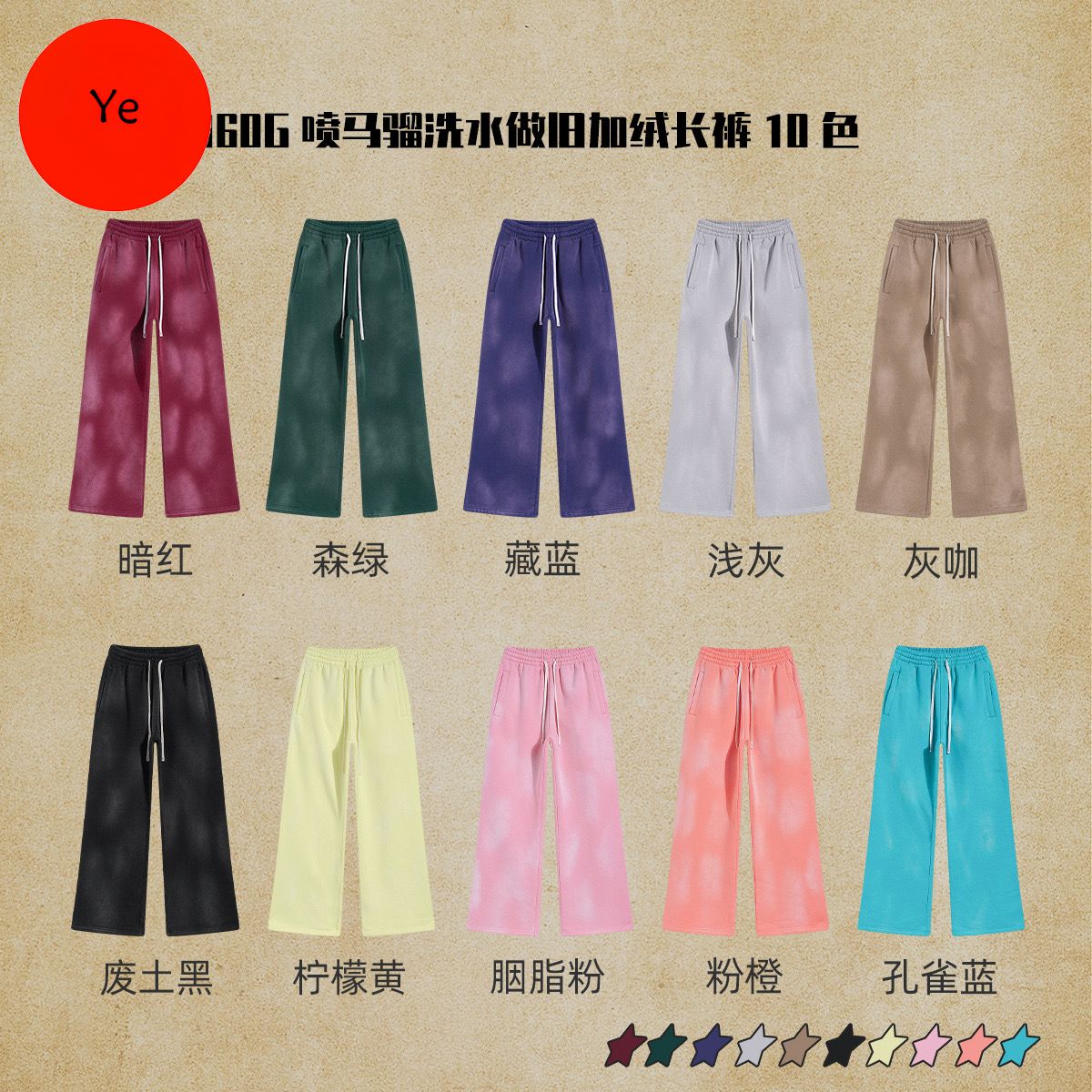 Autumn and winter 2024 new splash ink white spray-dyed loose plus velvet joggers