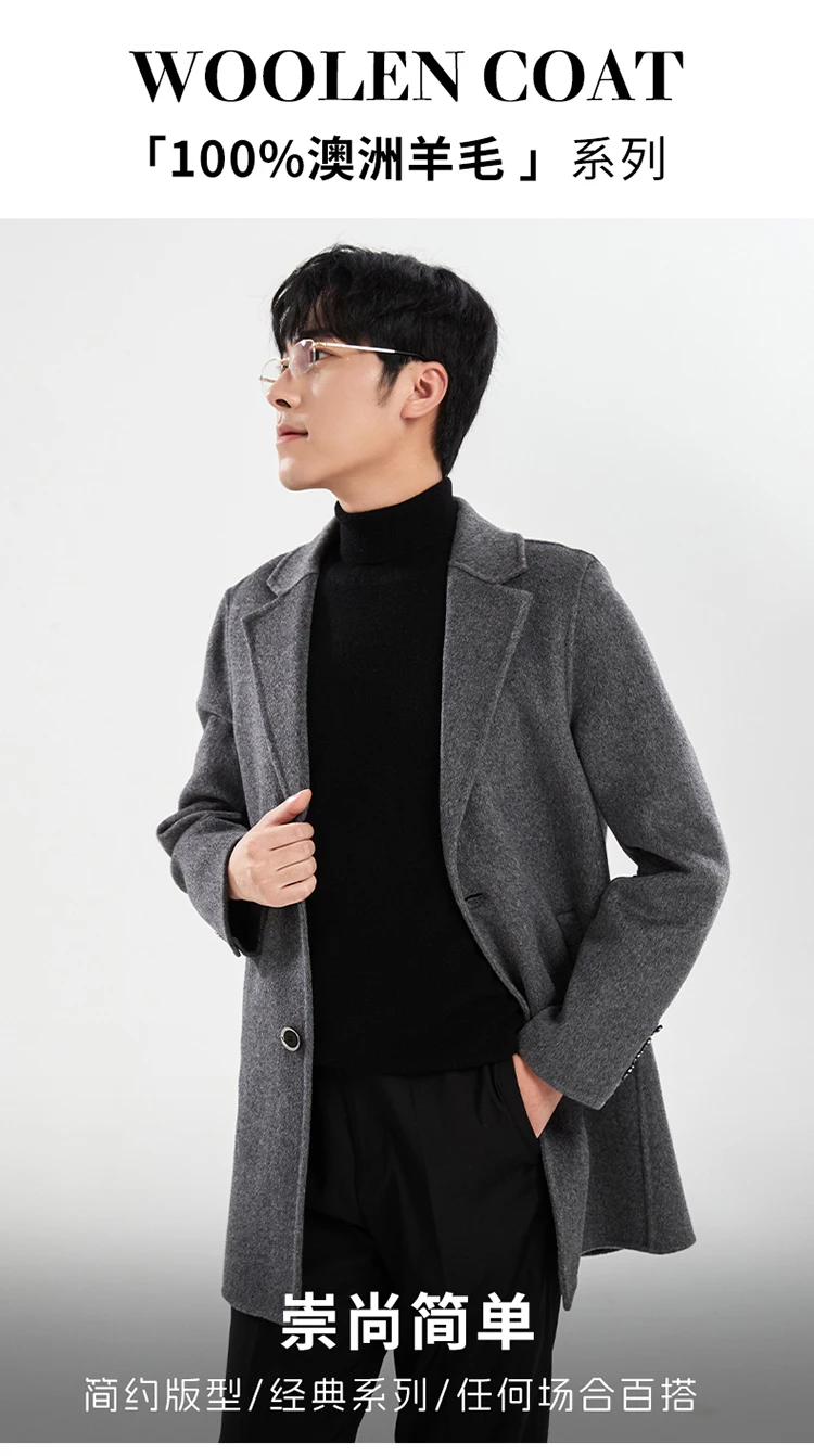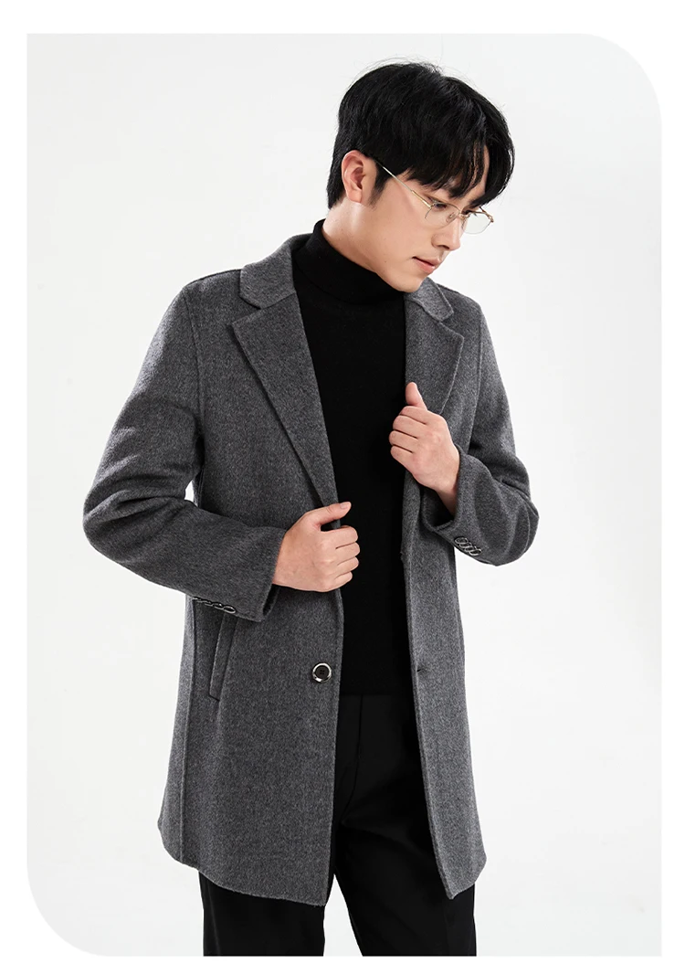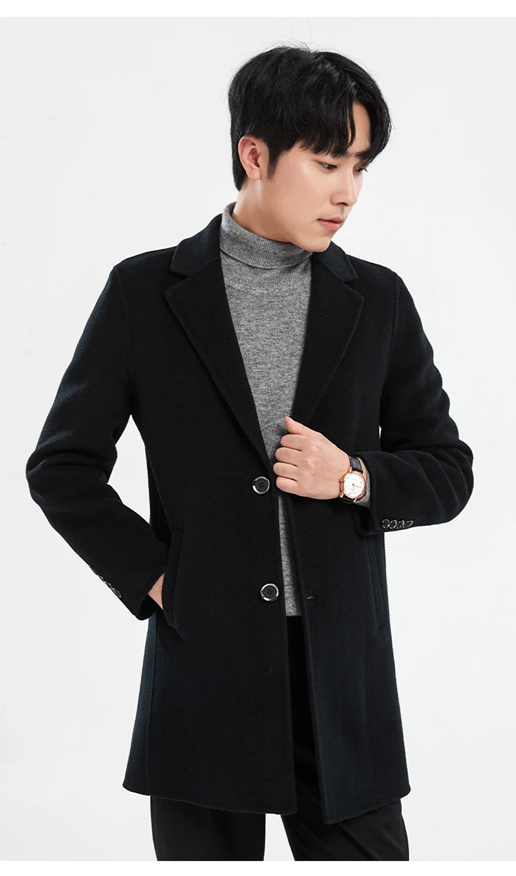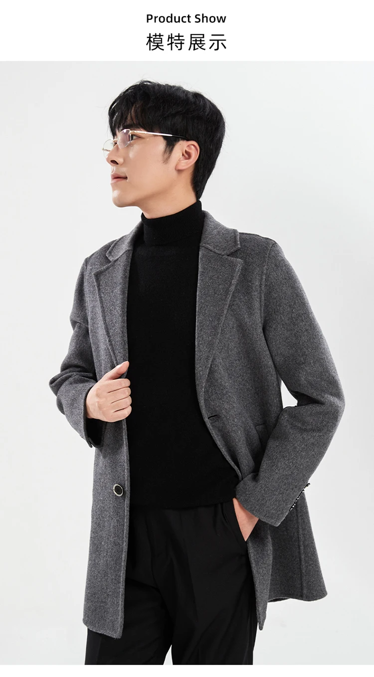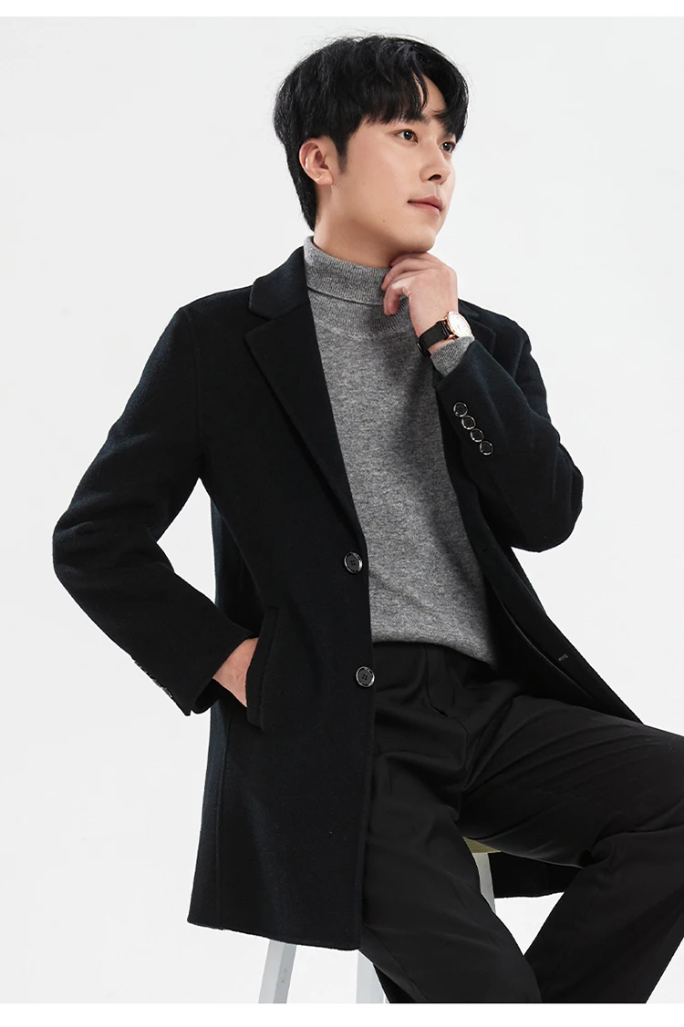Autumn and Winter Mid-Length Western-Style Business Reversible Woolen Coat Men's 100% Wool Handmade Coat Cashmere Overcoat Coat