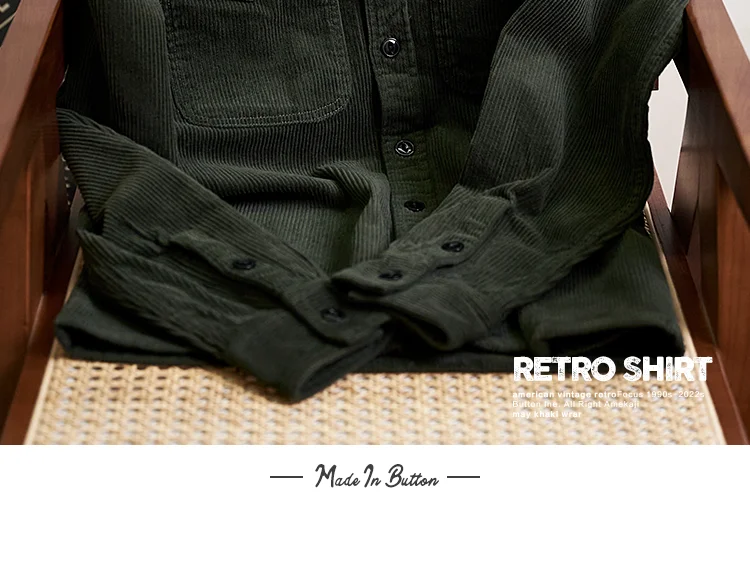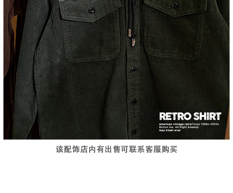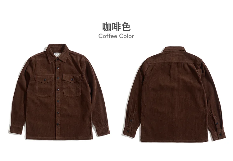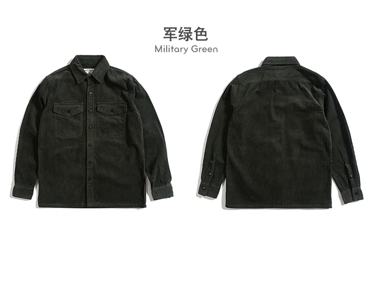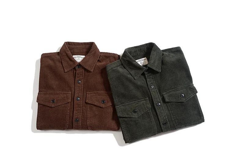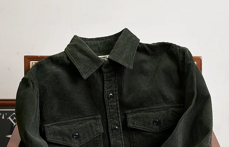 Autumn and Winter New American Retro Thick Corduroy Solid Color Cargo Shirt Men's Pure Cotton Long-sleeved Pocket Casual Blouses