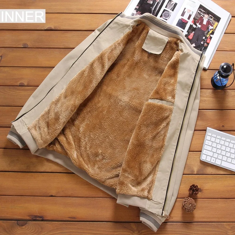 Autumn And Winter New Men's Fashion Aviator Jacket Fleece Thickened Warm Baseball Jacket Solid Color Zipper Large Size Top M-5XL