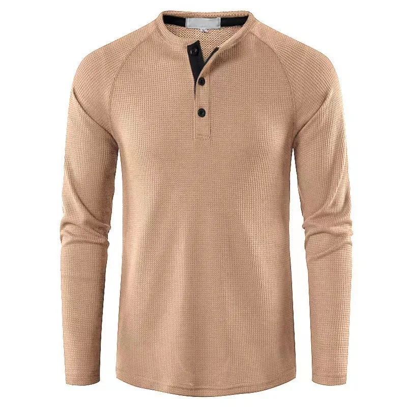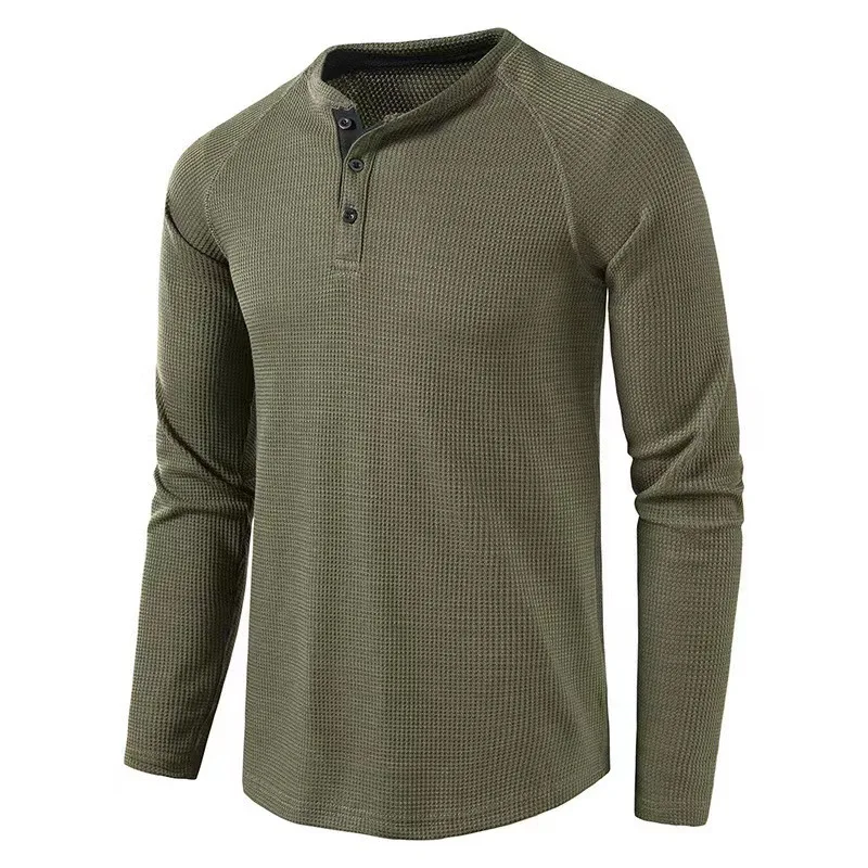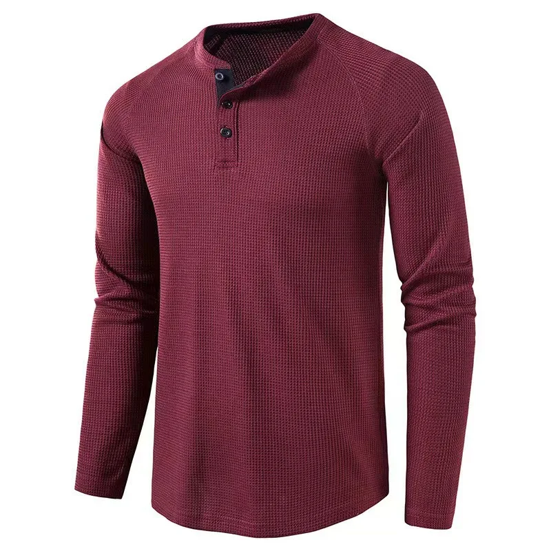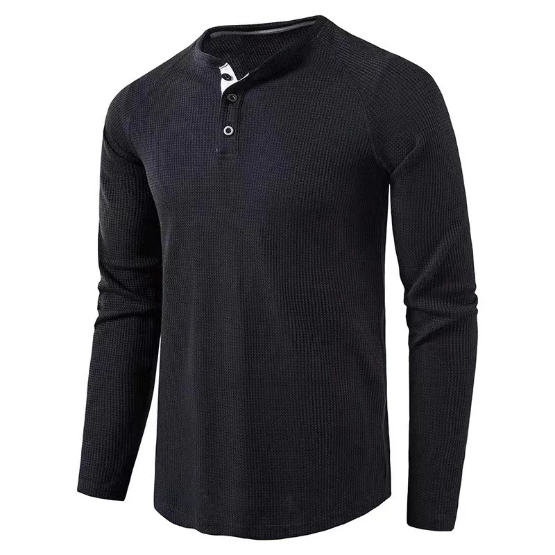 Autumn And Winter New Men's T-shirt Europe And The United States Men's Solid Color Long Sleeve Undershirt Henry Shirt Men
