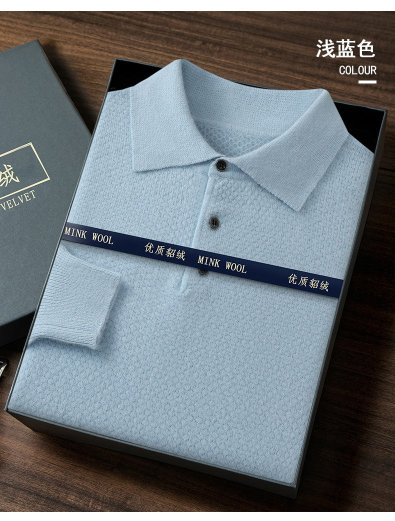 Autumn And Winter New Mink Cashmere Sweater Men's POLO Collar Thickened Loose Lapel Cashmere Long Sleeve Knit Bottoming Shirt