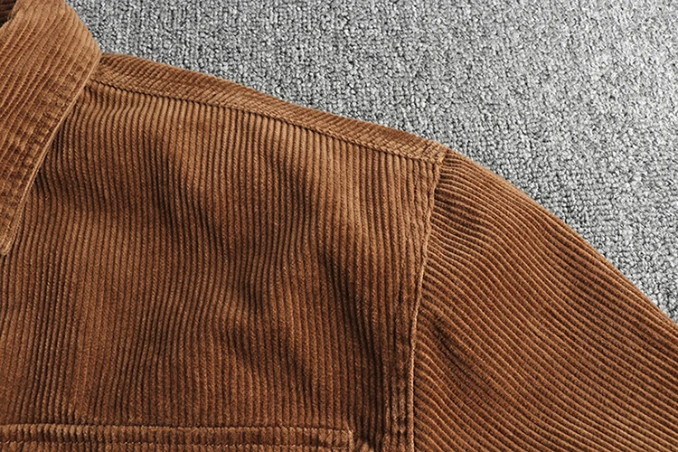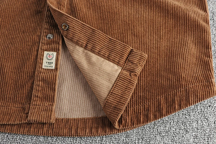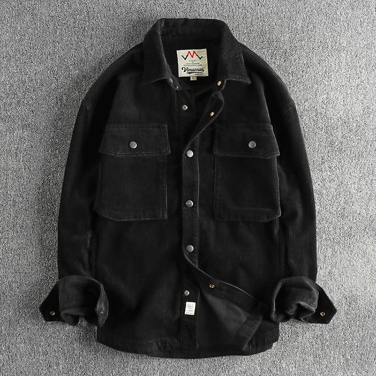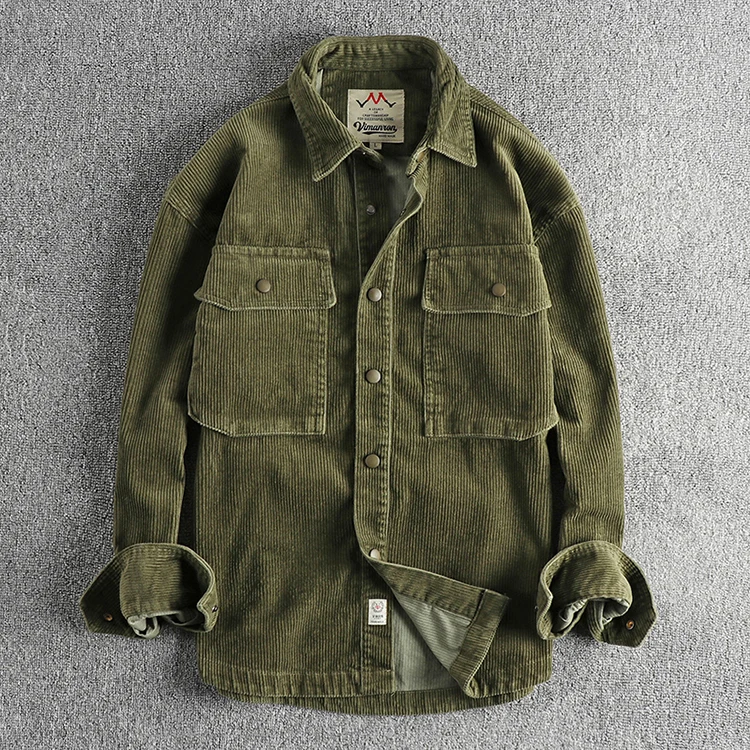 Autumn and winter thick wash corduroy long sleeve shirt men's retro trend cargo big pocket solid color casual coat