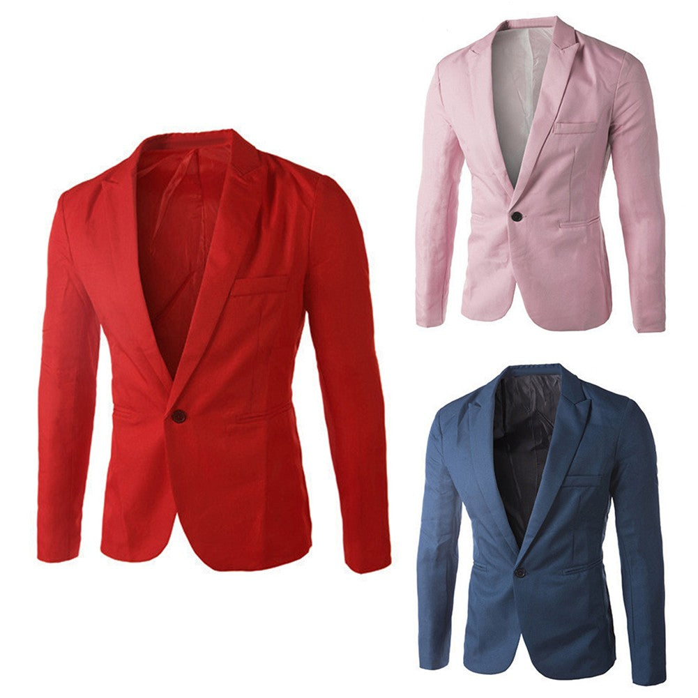 Fashion Men Solid Color Casual Business Suit Blazer Jacket Autumn Outwear Top
