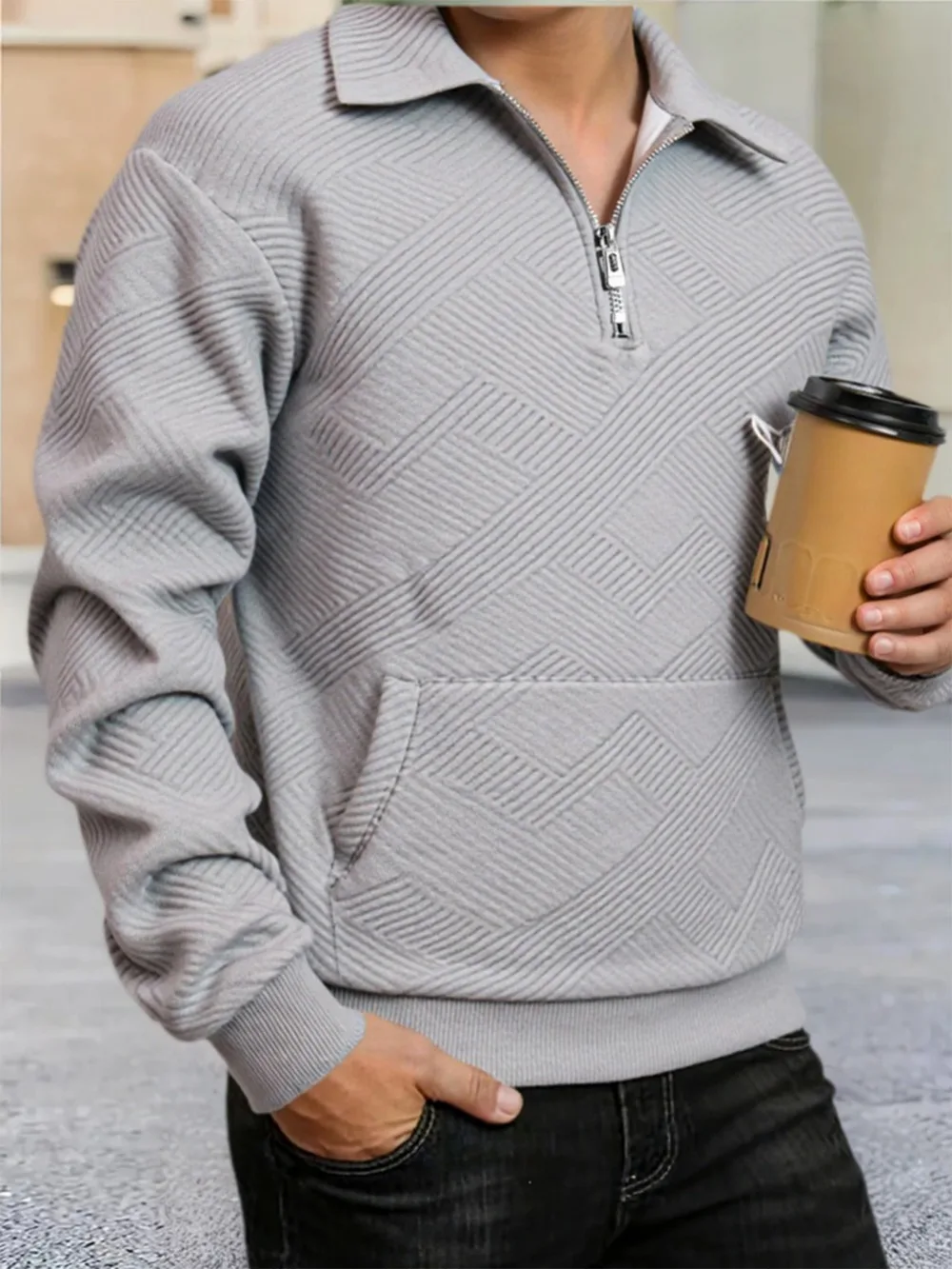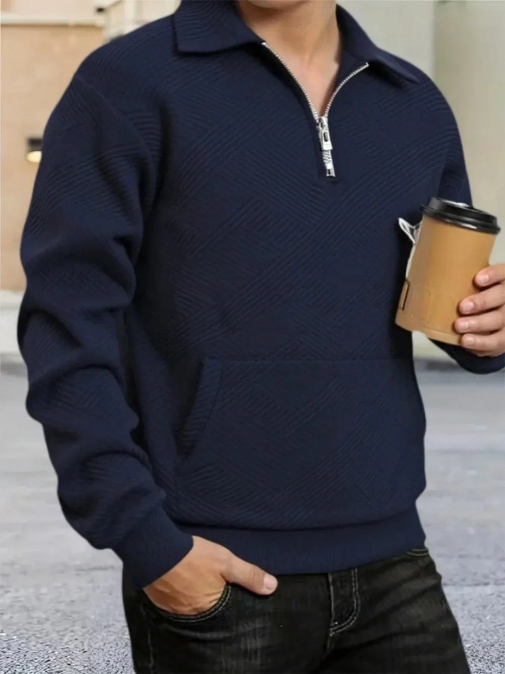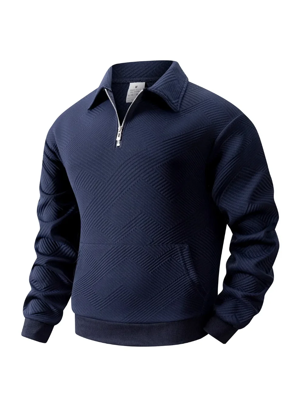 Autumn Men's Casual Sweatshirt Quarter Zip Solid Color Pullover Sweater Outdoor Daily Long Sleeve Polo Turtleneck Male Tops