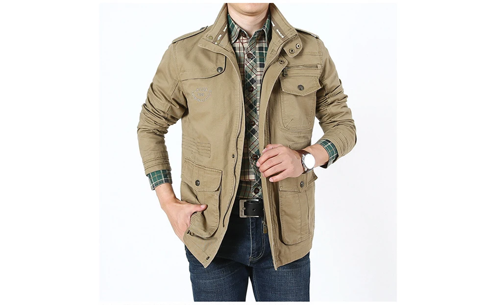 Autumn Men's Military Jacket Casual Man Stand Collar Cotton Business Coats Men Multi-pocket Windbreaker Jackets Clothing 7XL