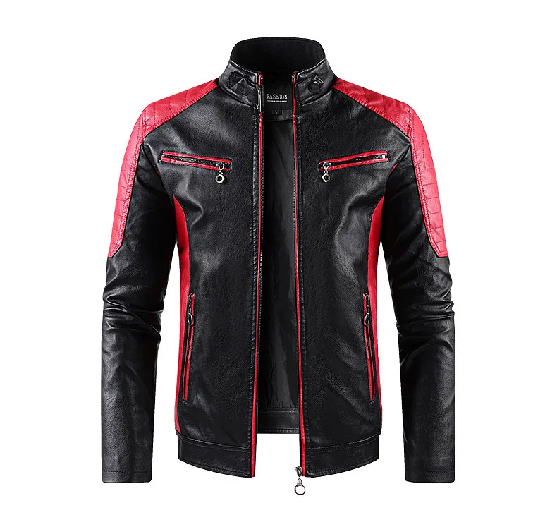 Autumn Men's Stand Collar Color-Block PU Jacket, Fashionable Jackets, Spring Casual Coat. Asian Size Loose Fit Top.