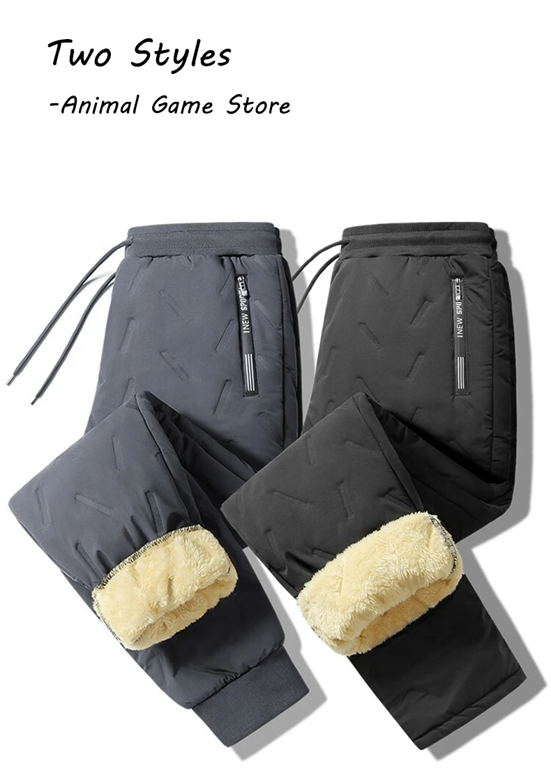 Autumn Mens Thermal Streetwear Plush Thick Fleece Sweatpant Lambswool Waterproof Trousers Winter Waem Casual Windproof Pants
