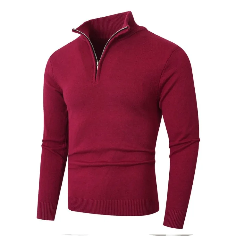 Autumn Mens Zip Pullover Sweater Lightweight Mock Neck Woolen Polo Sweaters Knit Casual Solid Color Cardigan Winter Warm Tops