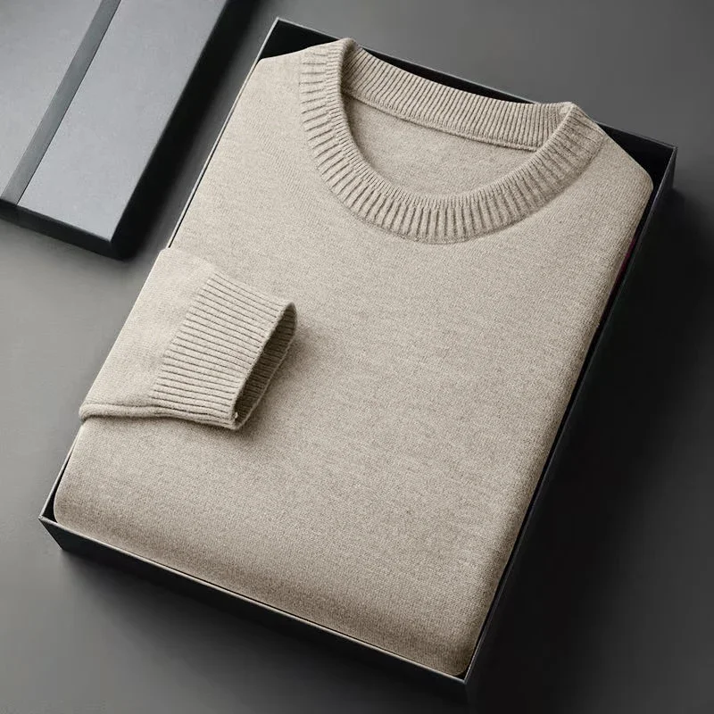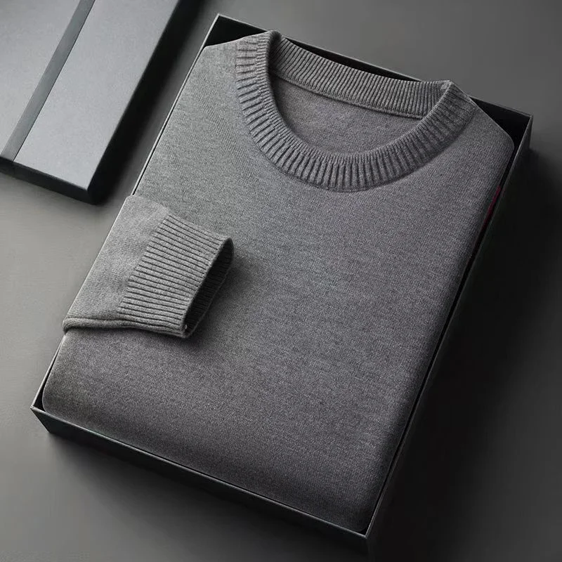 Autumn New Men's Round Neck Pullover Long Sleeved Knitted Sweater Retro Lightweight Sports Shirt Soild Color Casual Jacket