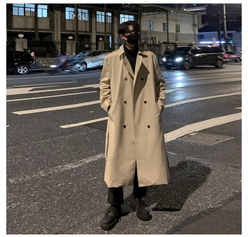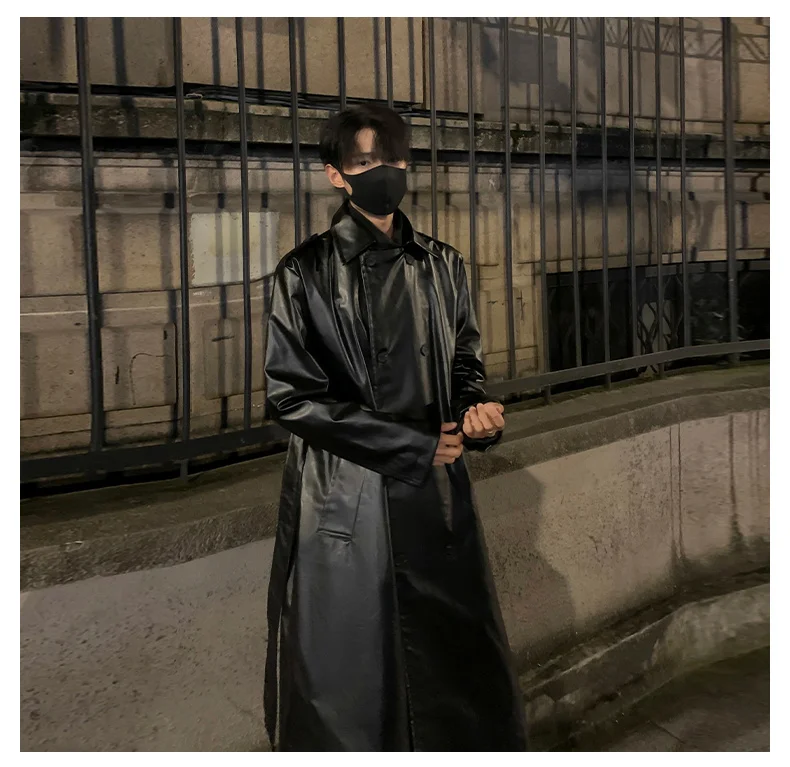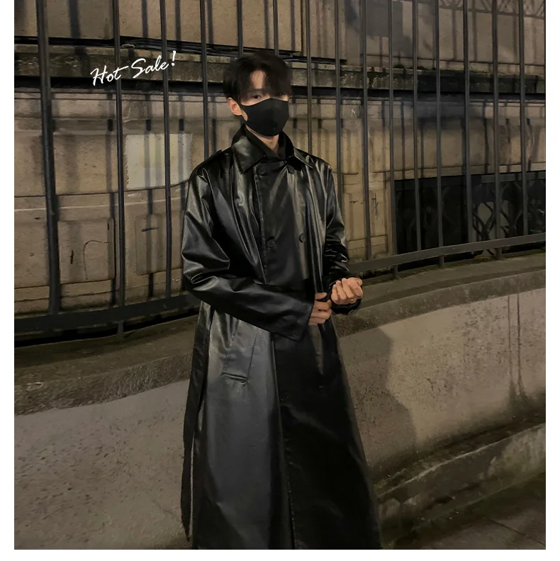 Autumn Trench Coat Men's High-end Luxury Double Row PU Leather Coat Male Long Korean Style Windbreaker Motorcycle Leather Jacket