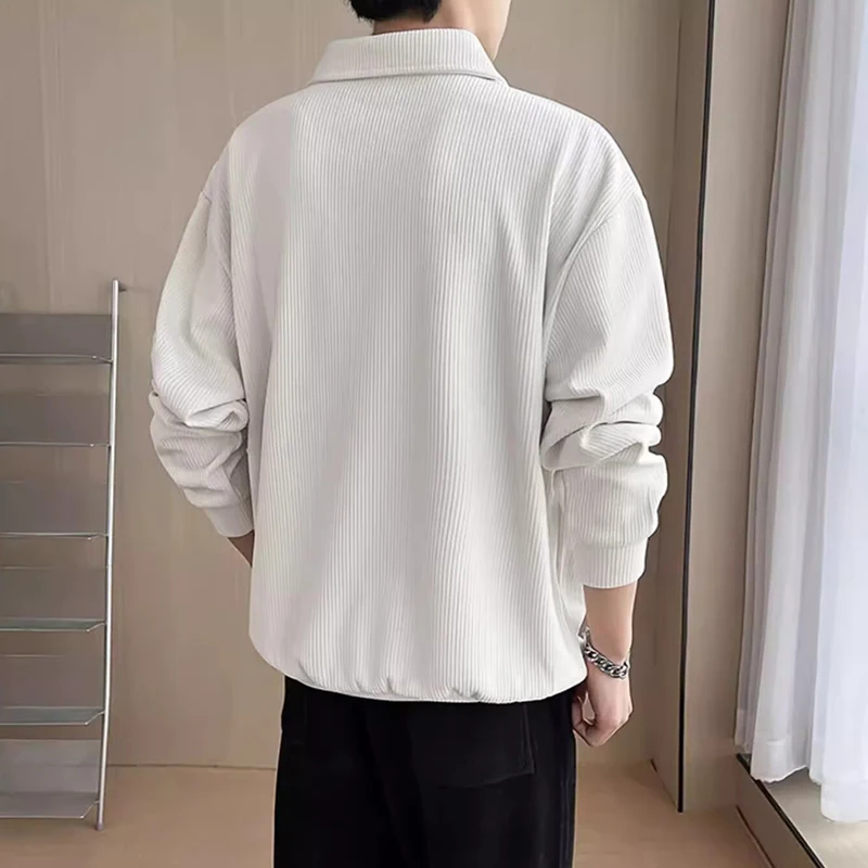 Autumn Vintage Polo Collar Sweater Men's Thickened Loose-Fit Half Zipper Knitwear New Anti-Pilling Flip Pullover Knit Sweaters