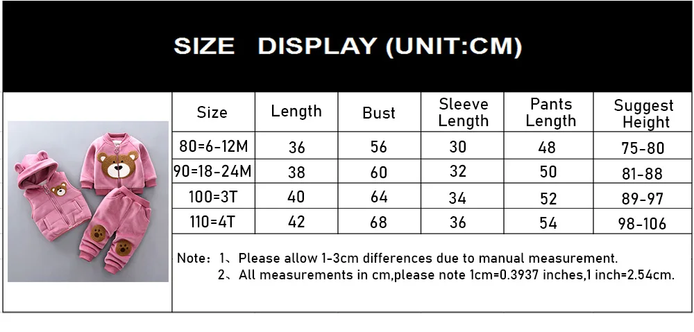 Autumn Winter Baby Boys Clothes Sets Thick Fleece Cartoon Bear Jacket Vest Pants 3Pcs Cotton Sport Suit For Girls Warm Outfits