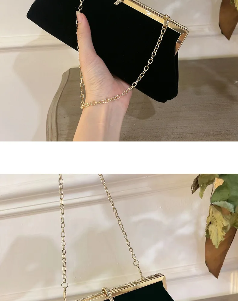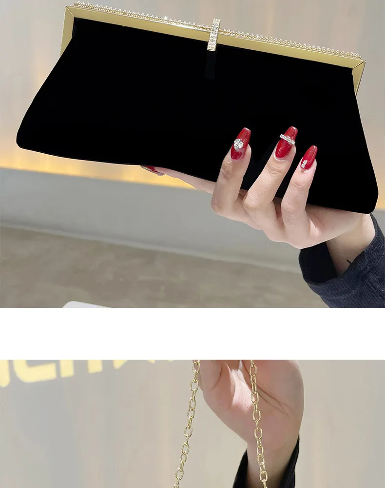 Autumn Winter Luxury Silk Velvet Clutch with Rhinestone Decoration for Formal Events Evening Party Women's Bag
