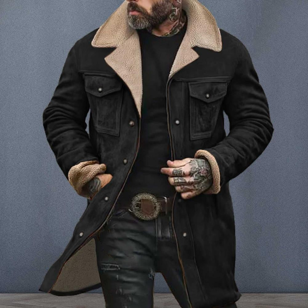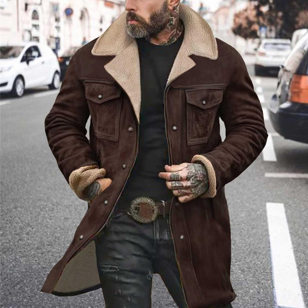 Autumn Winter Men Jacket Lapel Single-Breasted Mid-Length Coat Windproof Jacket Suede Multi Pockets Outerwear Men Clothing
