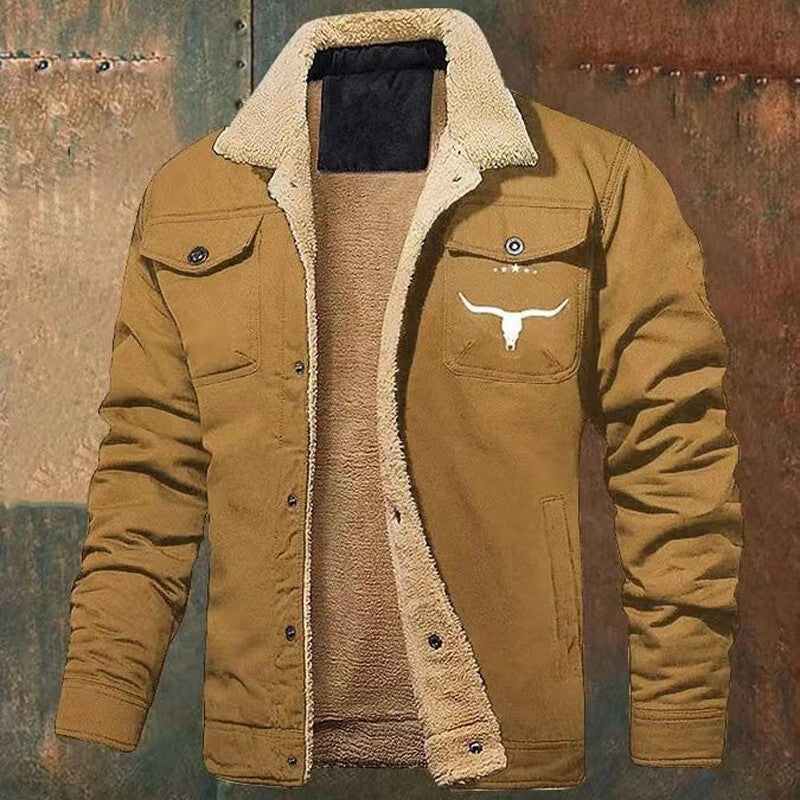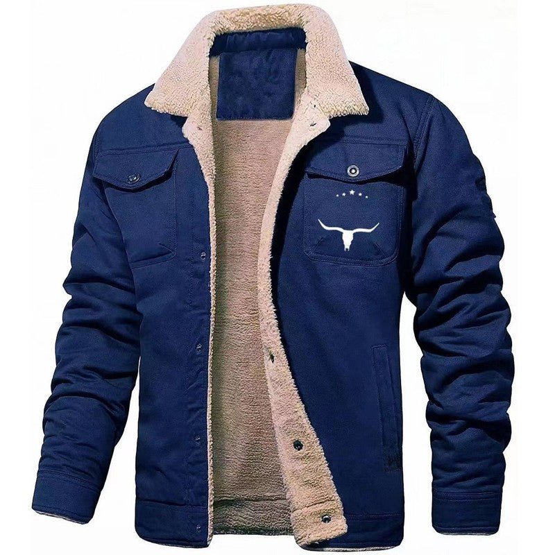 Autumn Winter Nw Men's Fleece Jacket Plush Thick Cotton Outerwear Letter Pattern Print Casual Clothing Men Windbreaker Coat