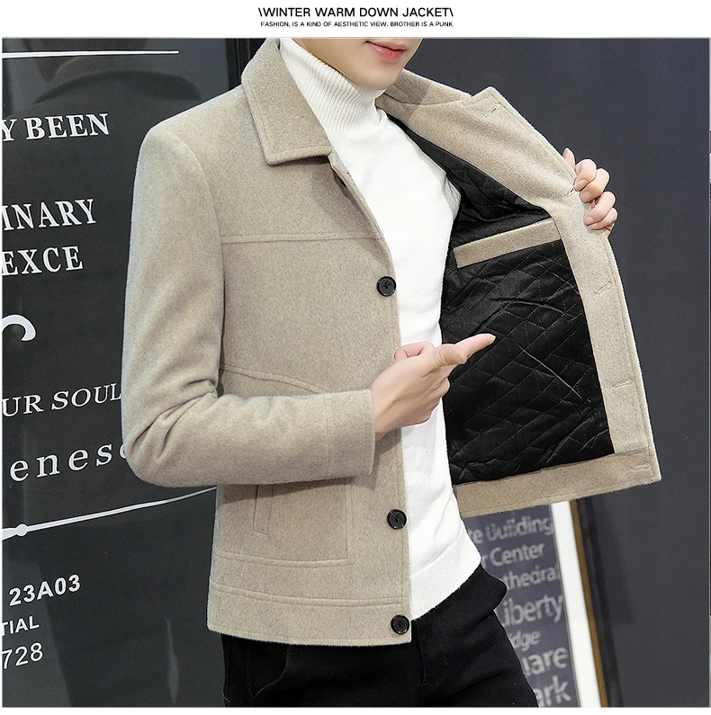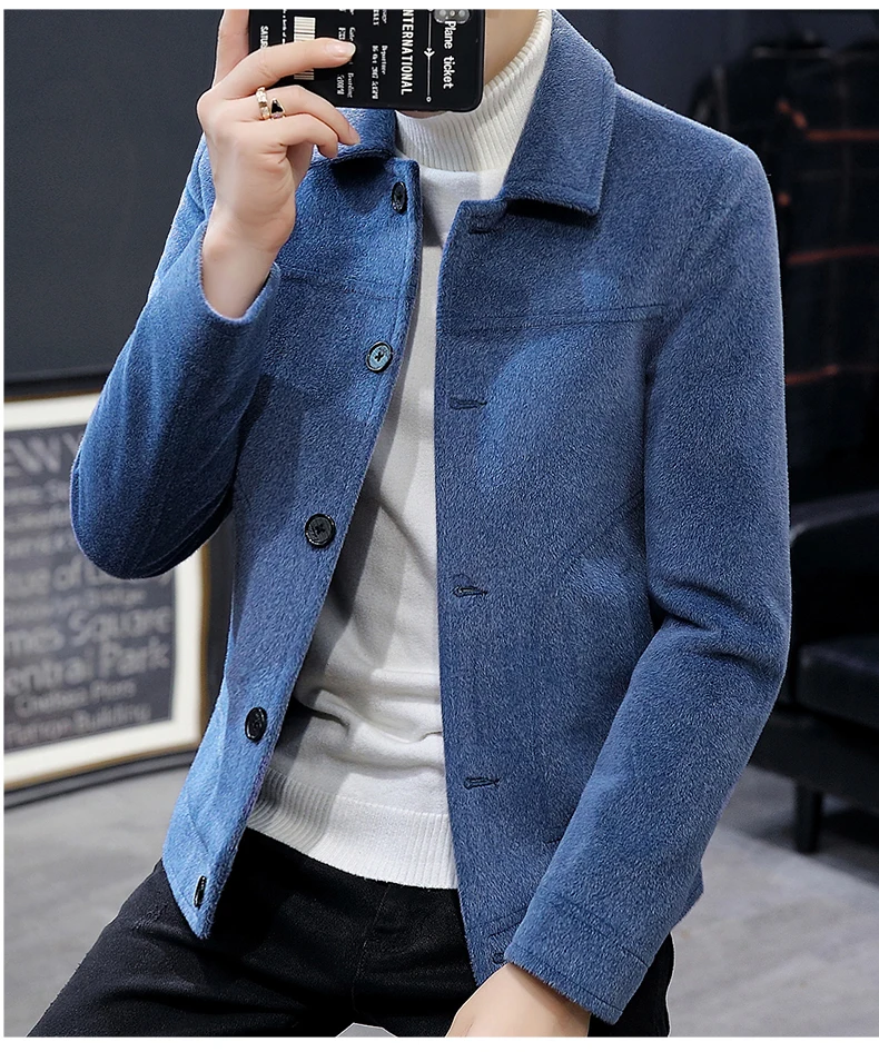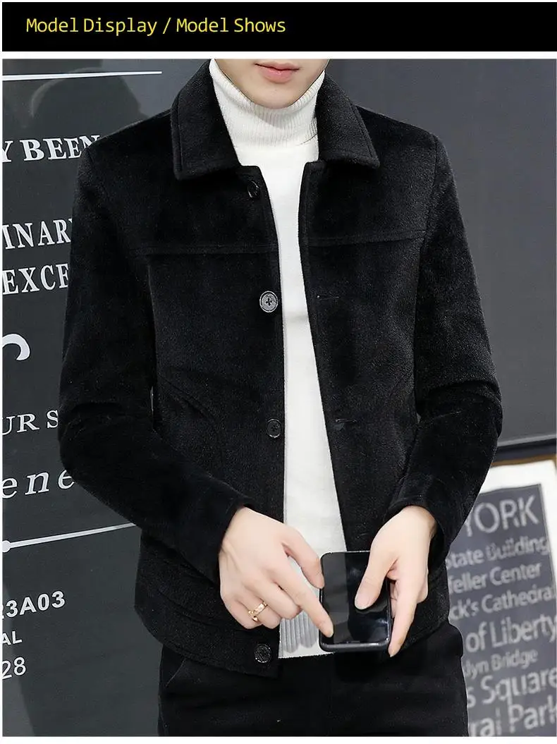 Autumn Winter Short Woolen Coat Merino Wool Men Korean Mink Imitation Jacket Trendy Heavy Clothes Mens Overcoat Heren Jas
