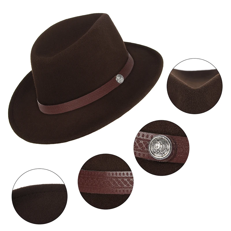 Autumn Winter Western Cowboy Hat for Men Women Wide Brim Fedora Jazz Hats Cowgirl Hat with Belt