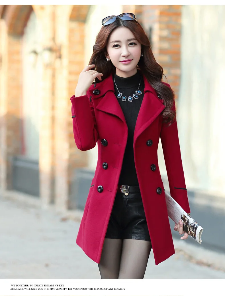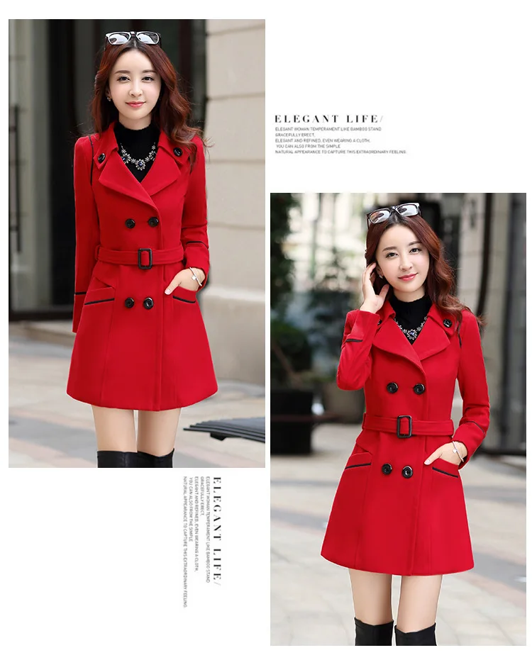 Autumn Winter Women Wool Coat 2024 Ladies Woolen Long Coat Female Fashion Slim-fit Double-Breasted Jacket with Belt S-3XL