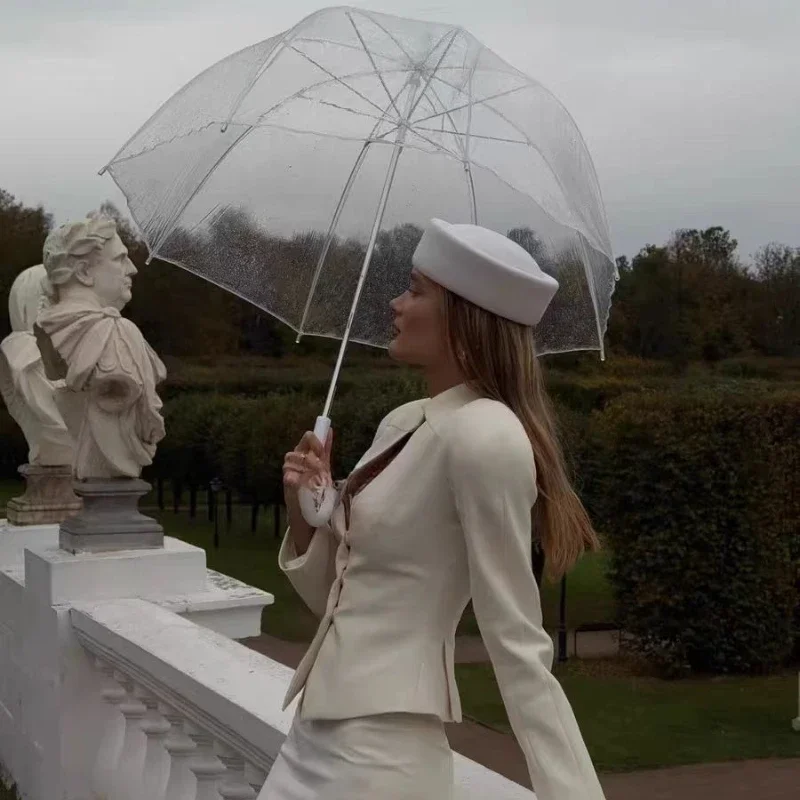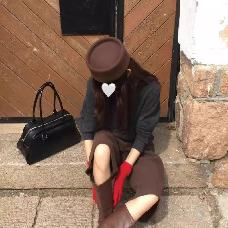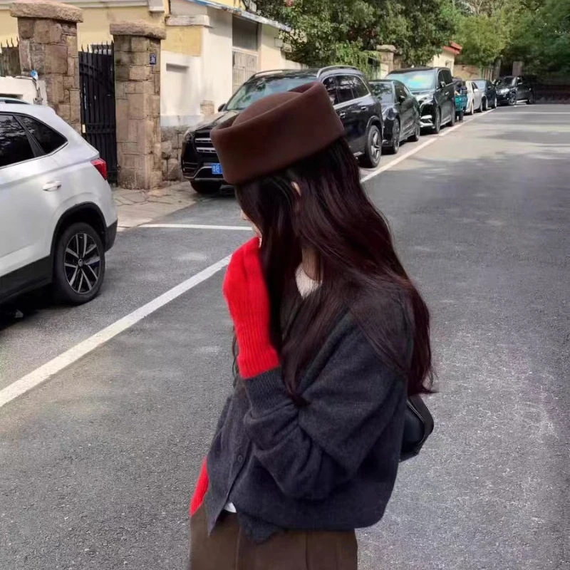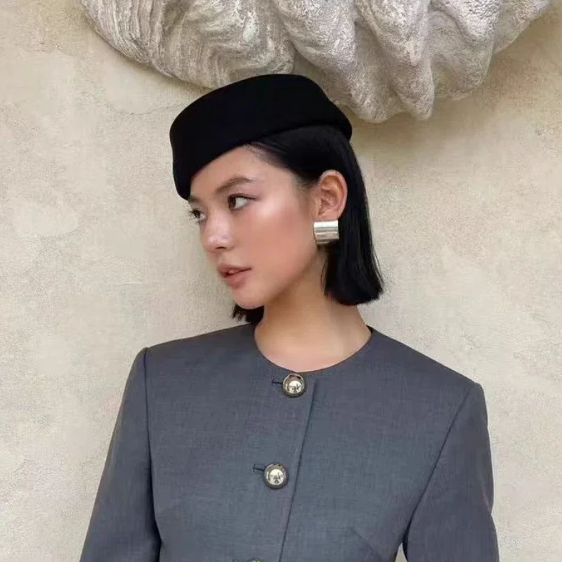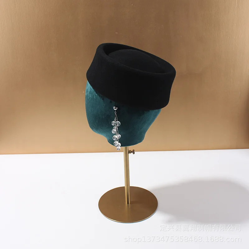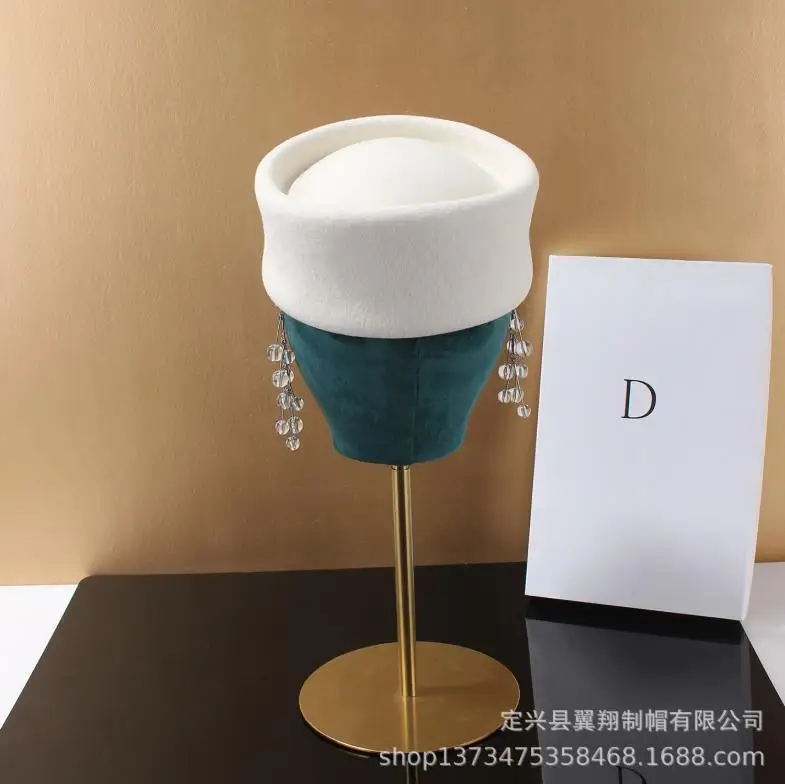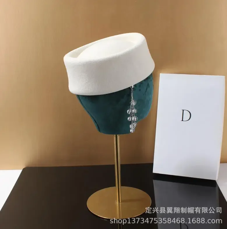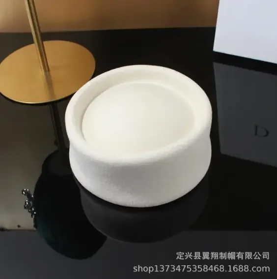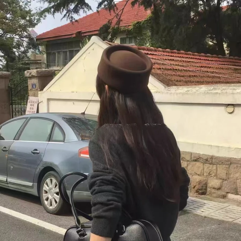 Autumn Winter Women Wool Fedoras Hats Elegant French Hard Top Concave Top Felt Berets Hat Wedding Fascinator Party Pillbox Cap
