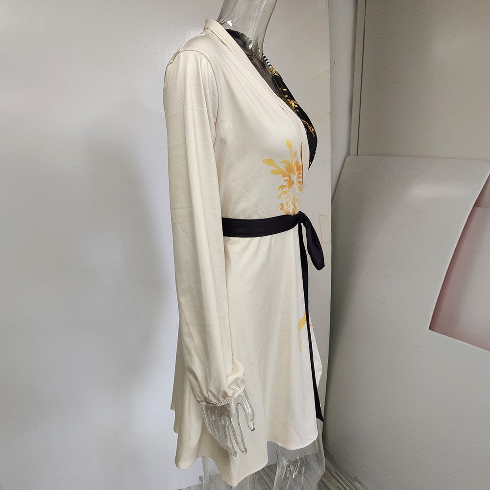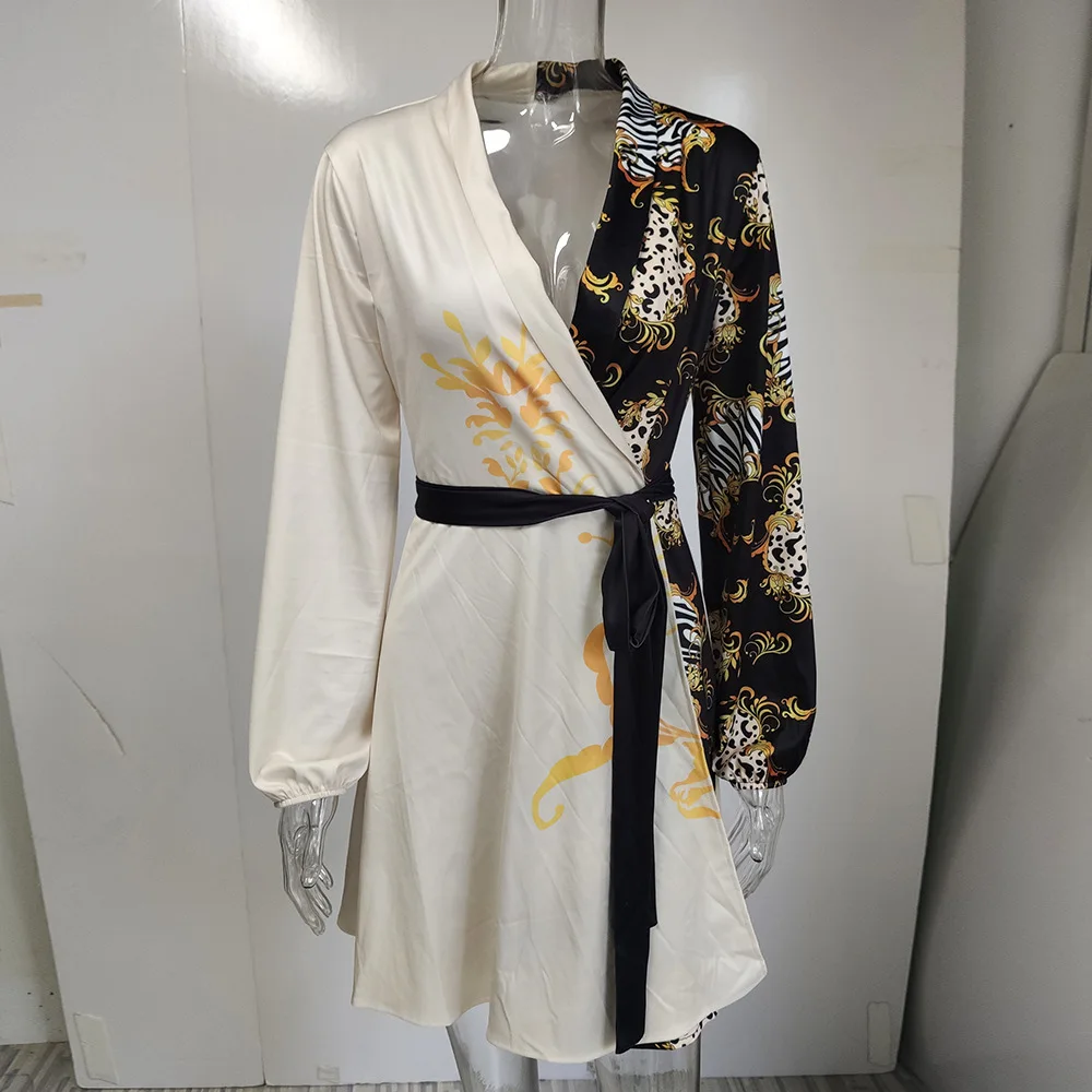 Autumn Winter Womens Dresses V-neck Wrap Up Dress for Women Woman Clothing Korean Version long sleeve Loose Elegant dress Skirt