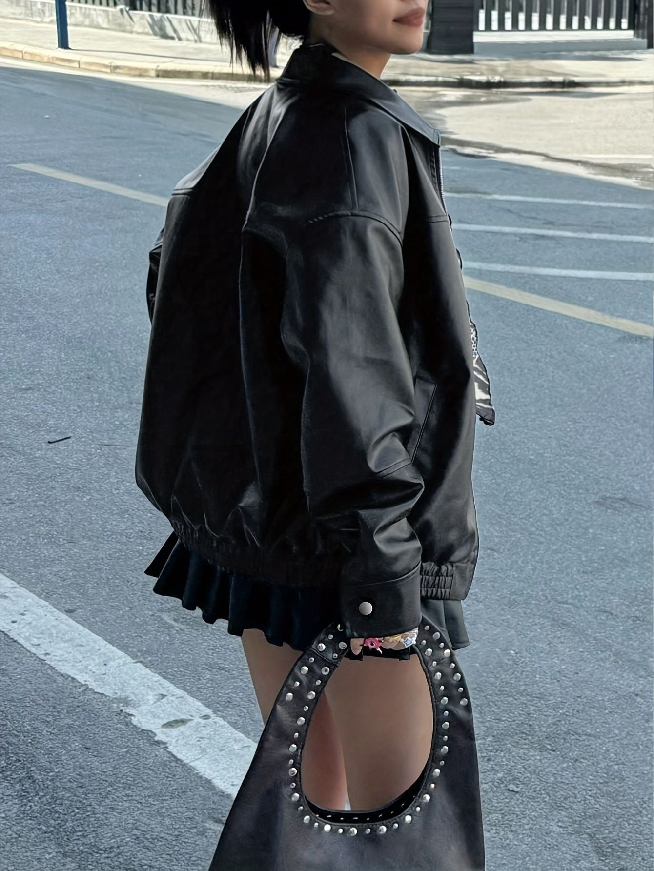 Autumn Women's Faux Leather Jackets 2025 Fall Long Sleeve Bomber Jacket Lapel Zip Up Motorcycle Coats Winter Clothing