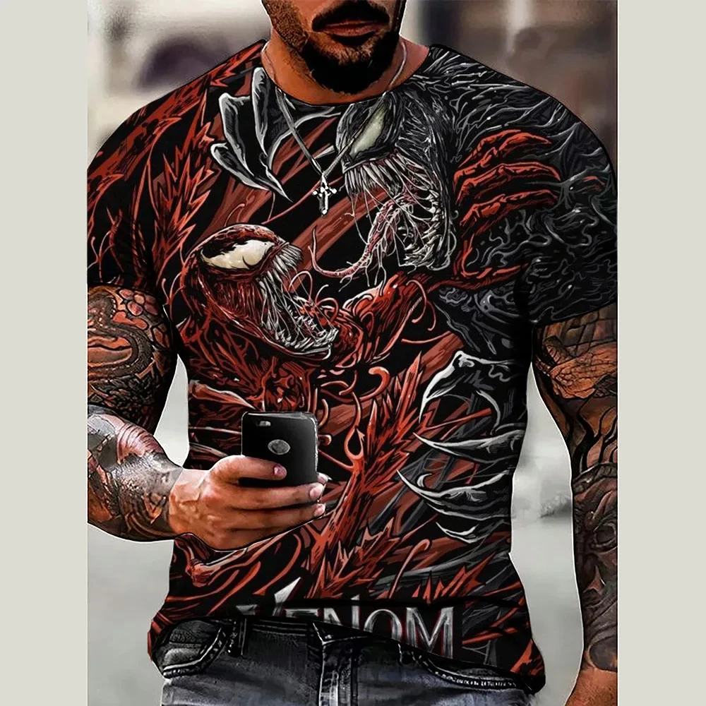 Avengers: Marvel Heroes Short Sleeve Printed T-shirt for Men, Spider Man Venom Role Playing Costume Top for Men