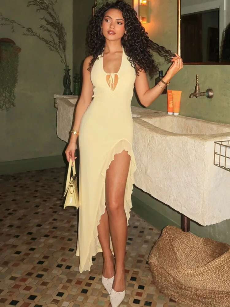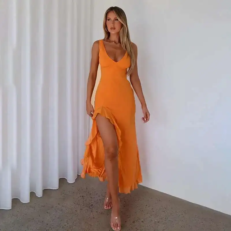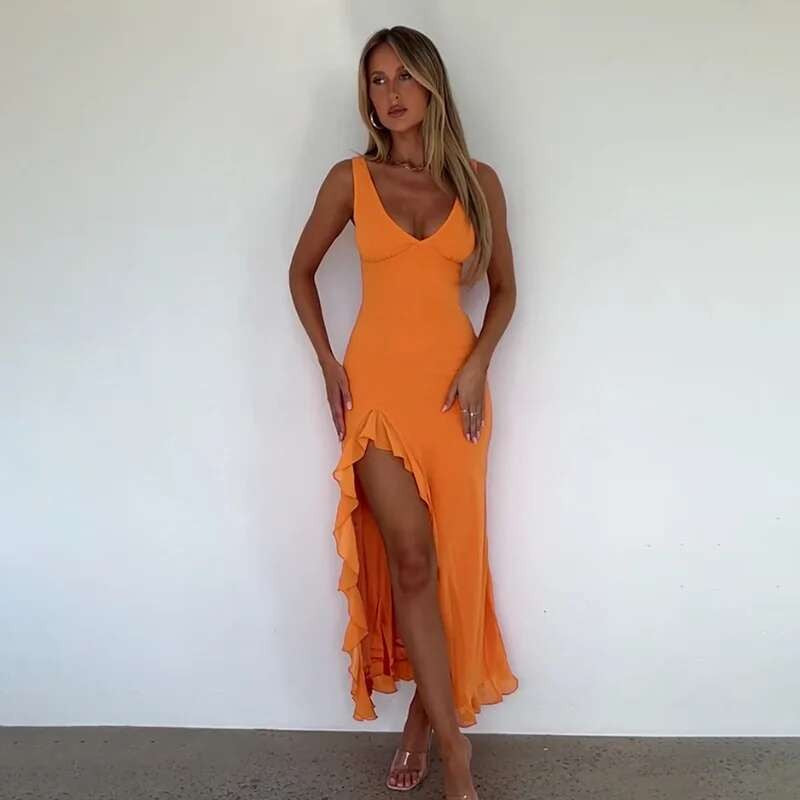 Avrilyaan Ruffle High Split Sexy Dress Women 2024 Robes Elegant Evening Summer D