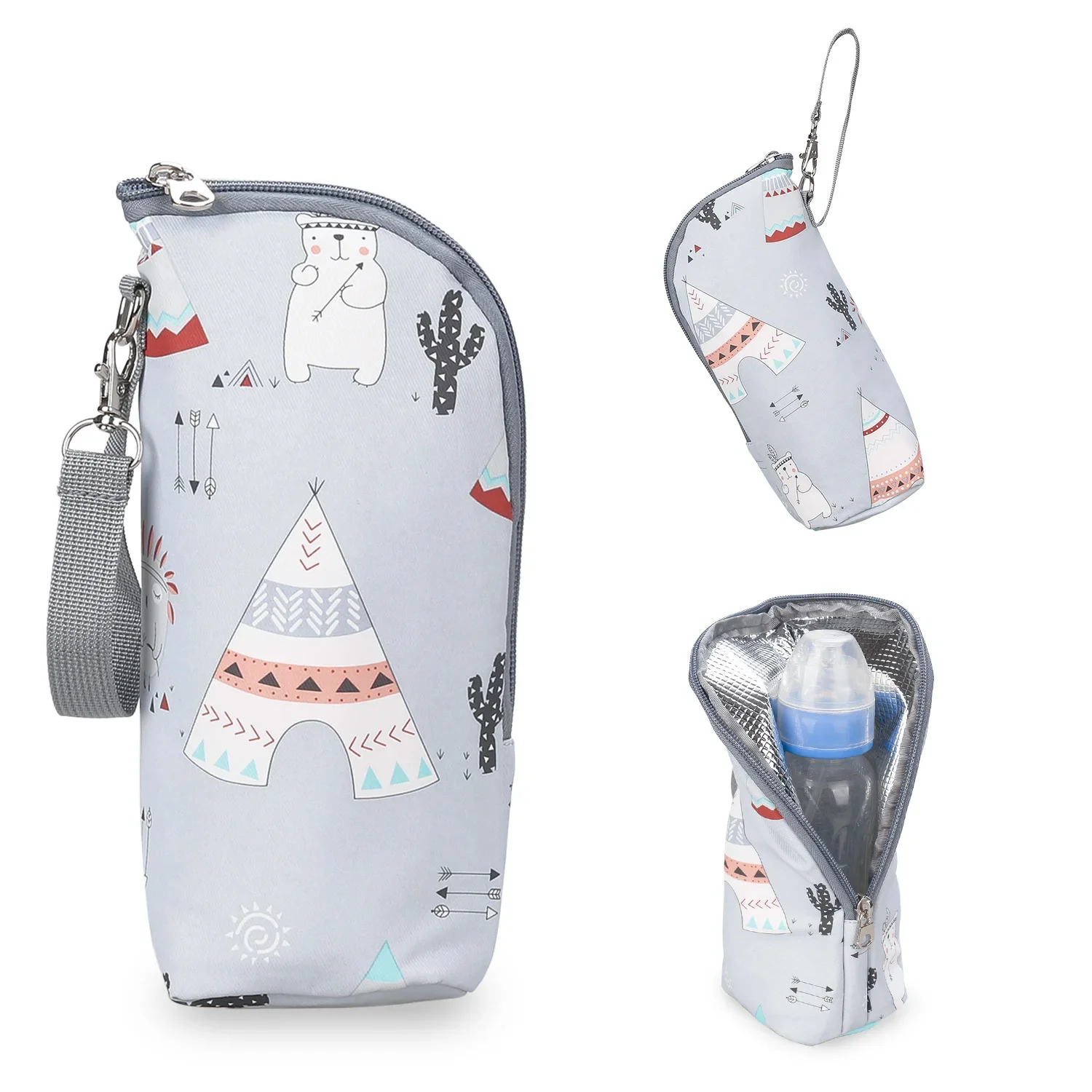 Baby Bottle Warmer Bag Portable Infant Feeding Bottle Aluminum Foil Insulation Outing Stroller Hanging Bag for Storage Cups