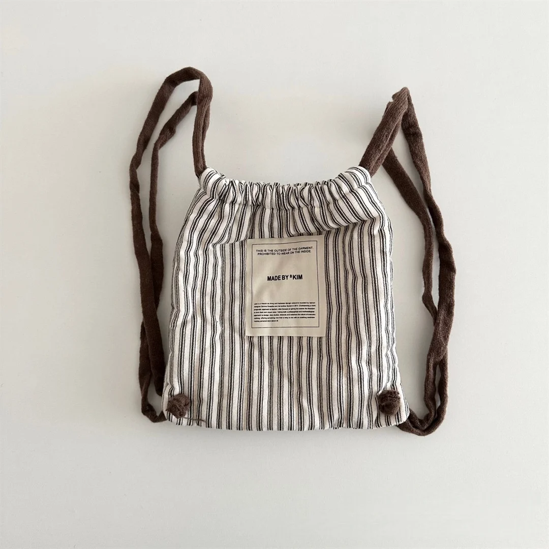 Baby Korean Style Drawstring Backpack Winter Polka Dot Stripe Plaid Lightweight Kids Storage Shoulder Bag