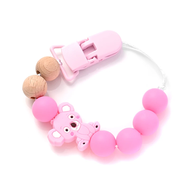 Baby Pacifier Clips Holder Silicone Cartoon Animal Teething Chain Wood Teether For Baby Pacifier Chain Nursing Chew Toys Gift