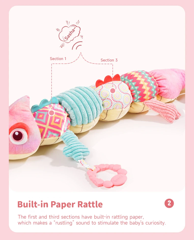 The toy is divided into several parts,the fabric of each part has different textures which can stimulate the baby's sensory development by touching. Bright colors and different patterns promote your baby's vision development.