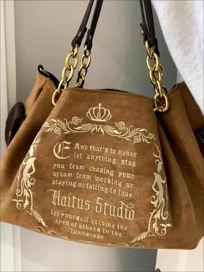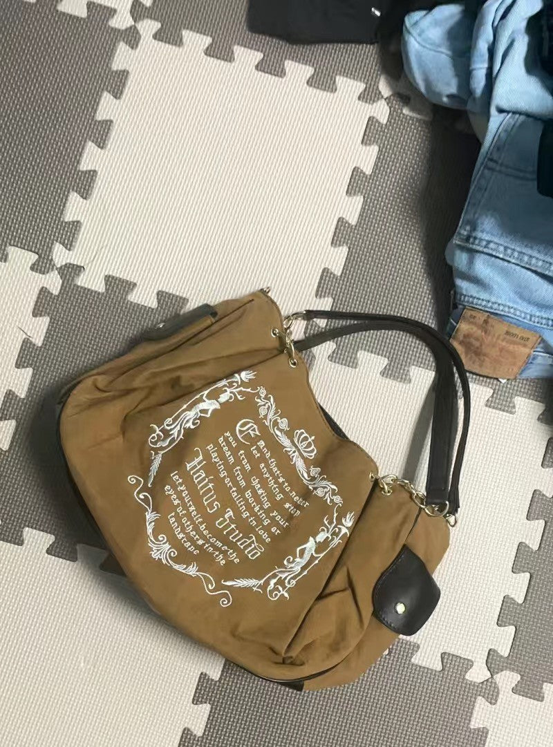 bags woman season 2024 spring summer Y2k Shoulder Bag embroidery vintage handbags Large capacity letter bag pink bag