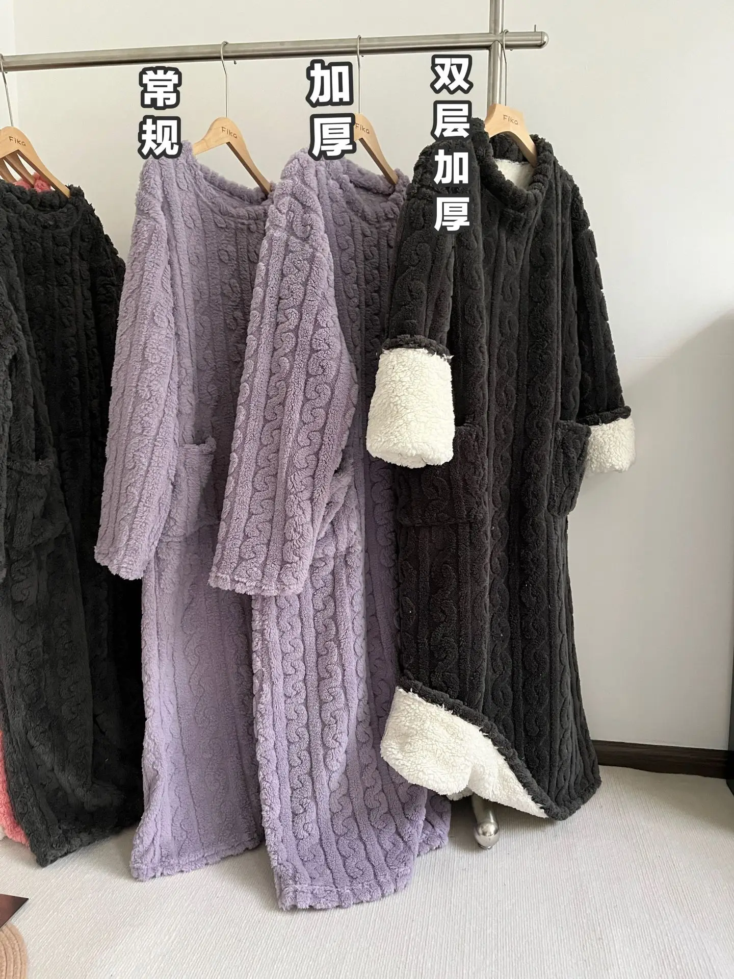 Bathrobe women's bathrobe coral padded thickened warm pajamas dress winter college students homewear plus size women's clothes c