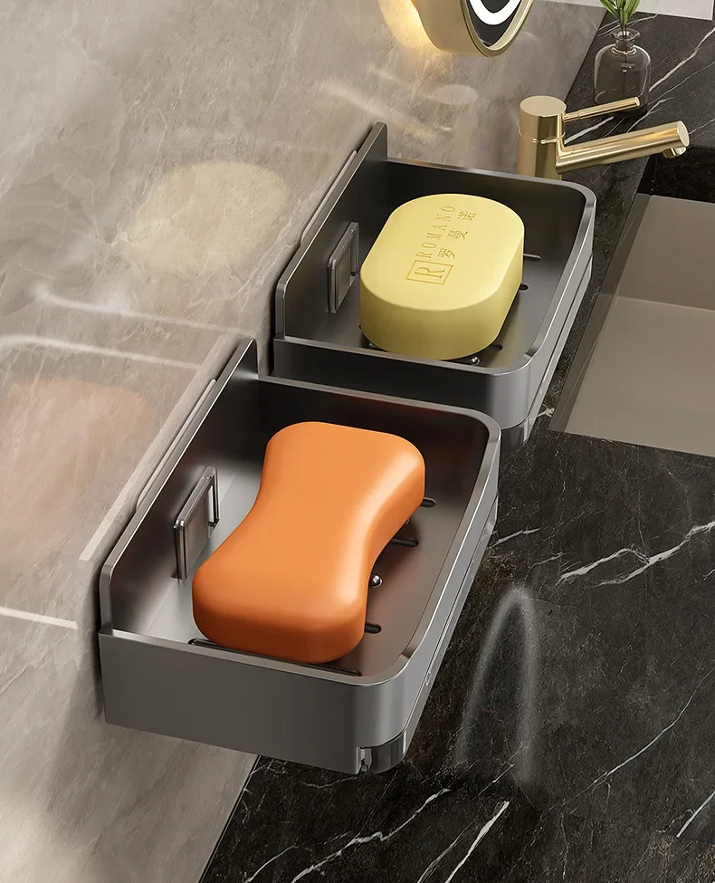 Bathroom Soap Holder Free-Punching Wall Mounted Soap Sponge Holder Organizer Double drainage Soap Dish Bathroom accessories