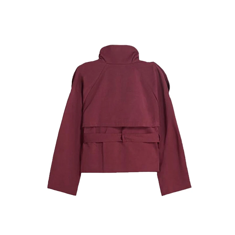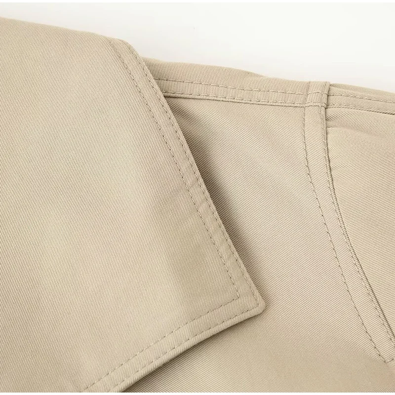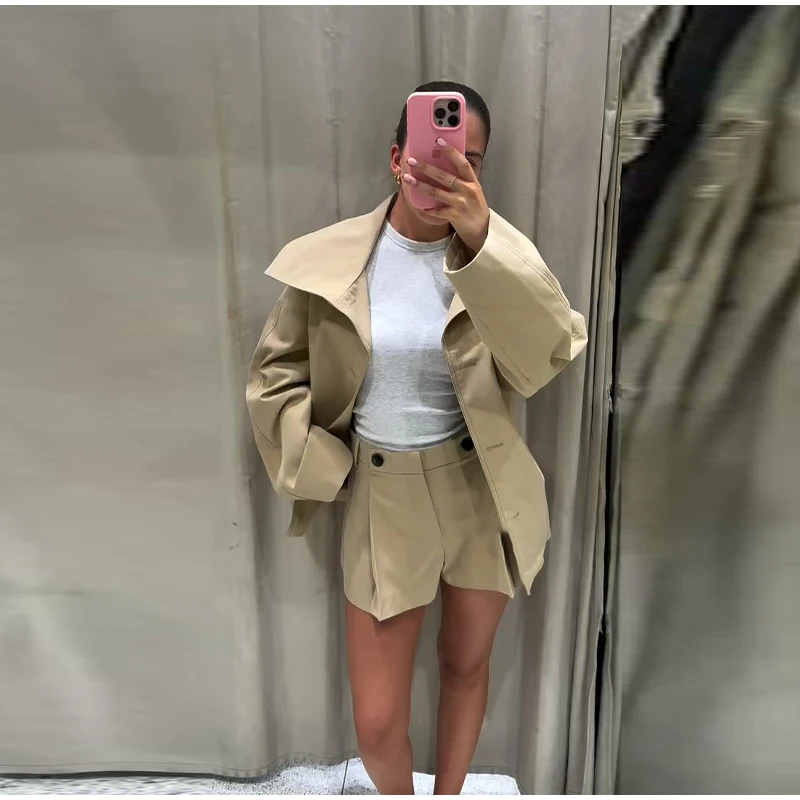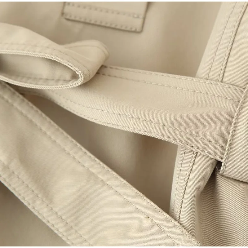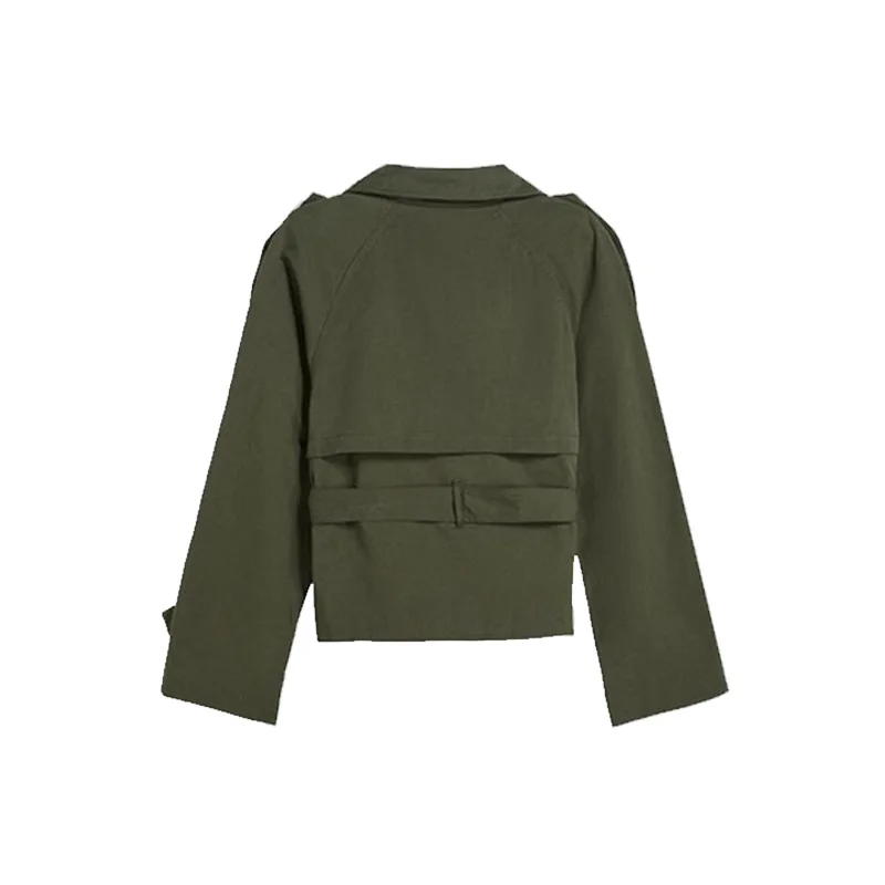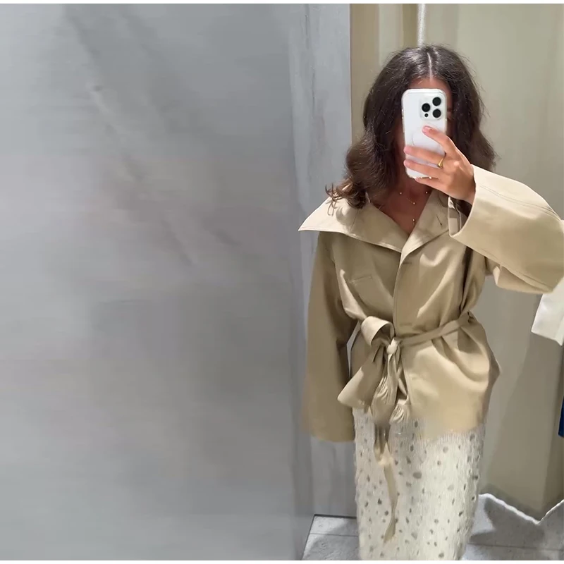 Belted Waist Cropped Trench Double Breasted Stand Collar 2025 Autumn Chic Elegant Women Coat Casual Vintage Office Lady Jacket