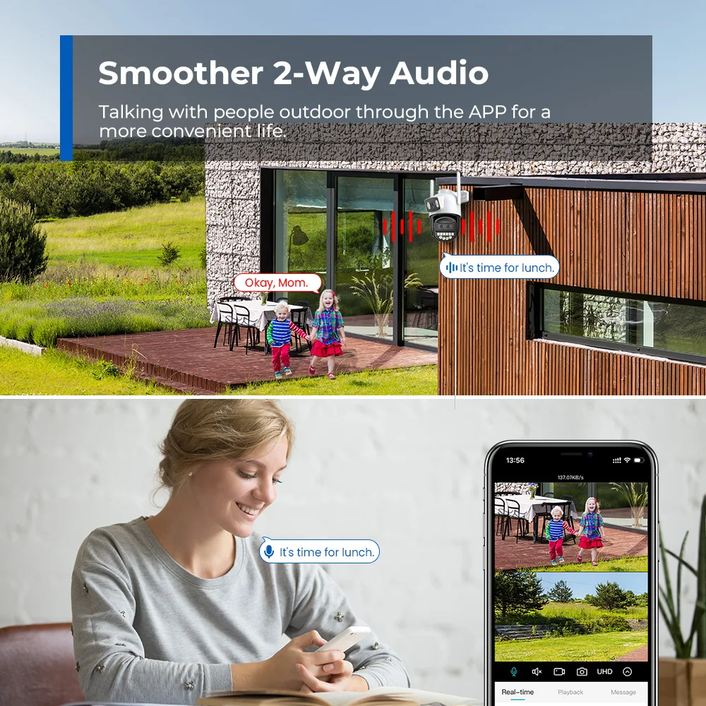 Built-in microphone and speaker / Customized new speakers with loud volume; You could talk to anyone nears the camera ( Warn someone to leave your house ).