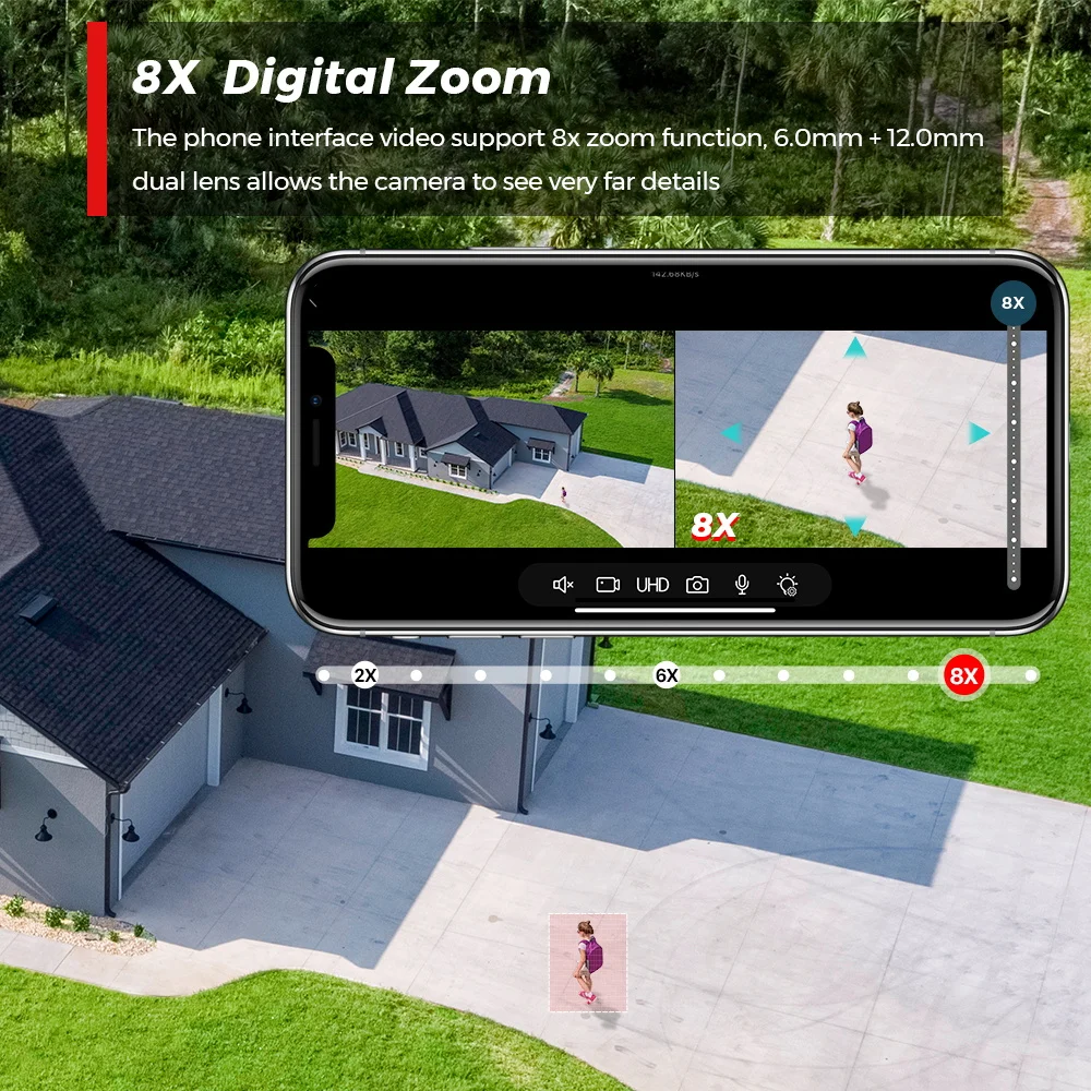 Quickly finds human targets and immediately sends a notification to your phone, letting you see what happens anywhere. It only detects the human shape