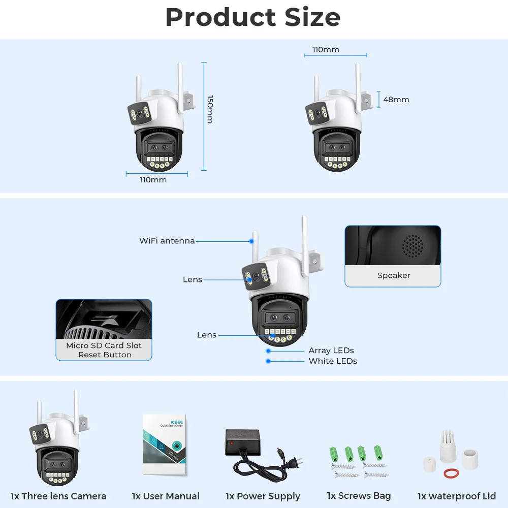 Rotates 270° Horizontally and 90° Vertically, You can control it in the ICSEE app directly whenever you want and wherever you are.