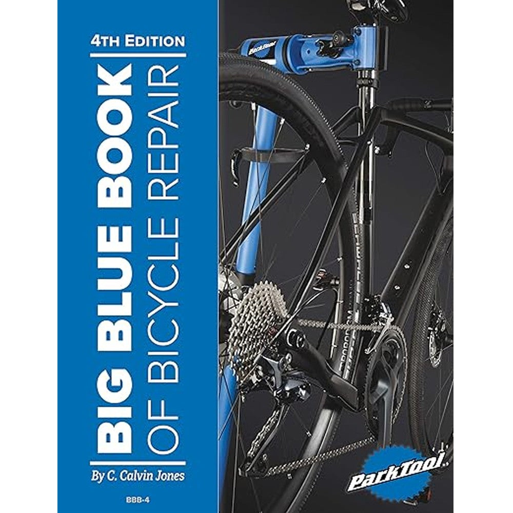 BBB-4 Big Blue Book of Bicycle Repair by Calvin Jones is packed with easy-to-follow, step-by-step procedures, color photos and repair tips for keeping almost any road or off-road bike running smoothly and trouble-free. Whether it's repairing a flat tire, adjusting brakes and shifting systems, truing wheels, or maintaining hub, headset and bottom bracket bearing systems, the BBB-4 has you covered. Thoroughly researched and revised, the 4th edition of the Big Blue Book contains updated photos, torque specifications and troubleshooting tables, along with new content on wheel building, electronic shifting, 12-speed and 1X drivetrains, tubeless tires, disc brakes, headset and bottom bracket standards, and more. Truly an indispensable tool and reference source for both the novice and advanced bicycle mechanic.
