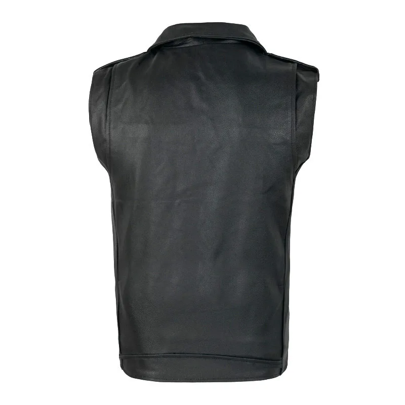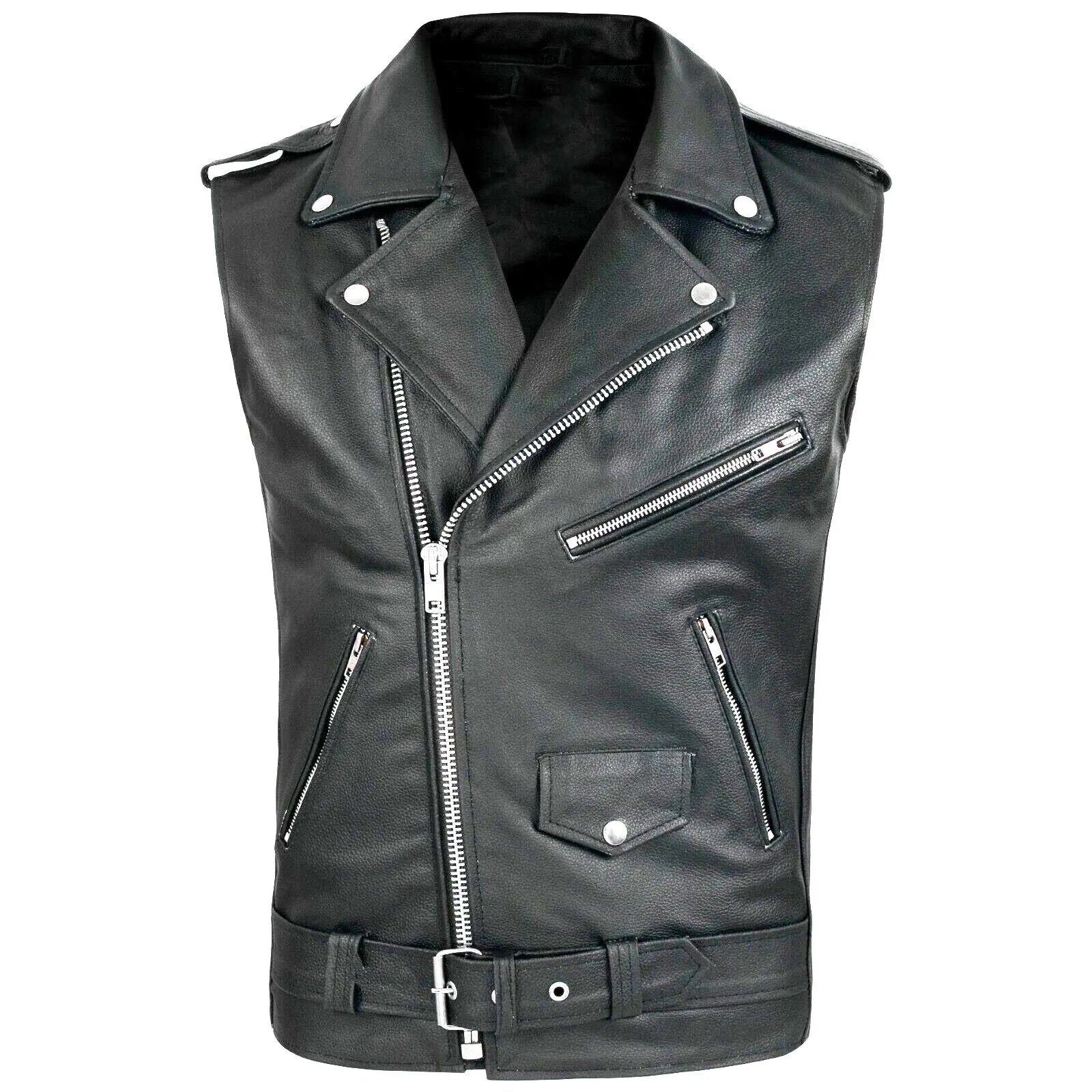 Black Color M-4xl Sizes Men's Sleeveless PU Leather Vest Style Motorcycle Jacket with Pockets Zipper Men Coats