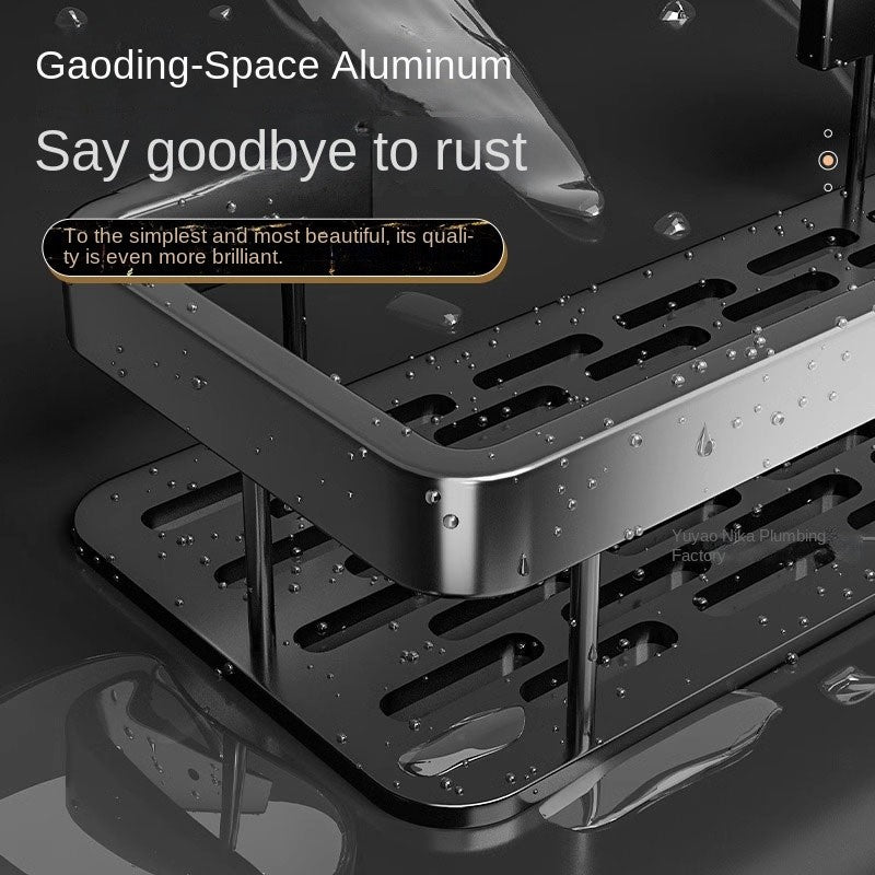 Black rectangular perforation-free bathroom storage rack Kitchen bathroom countertop wall hanging thick storage rack
