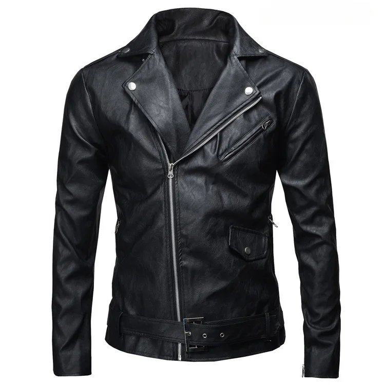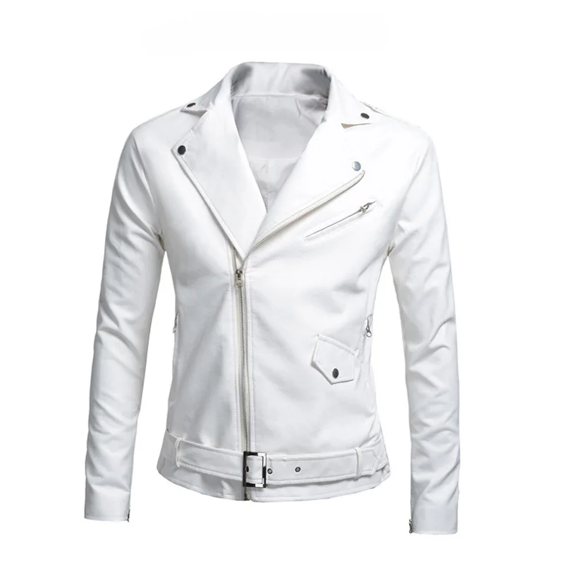 Black White Faux Leather Jacket Spring Autumn Slim Fit Men's Motorcycle Jacket With Zipper Casual Male Coat Outerwear Tops