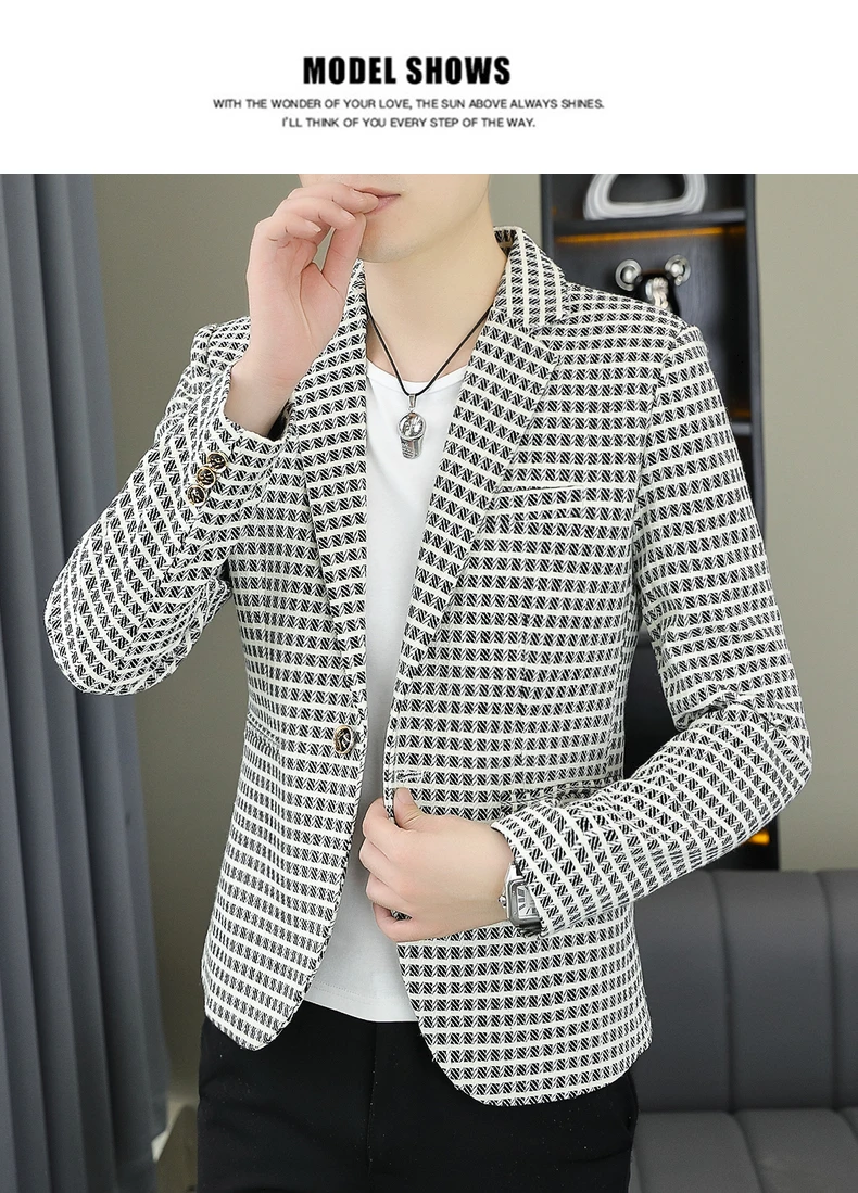 Blazer Men's Fashion Gentleman Business Outdoor Travel Plaid Slim-fit Korean Version of The Trend Handsome Youth Casual Blazer