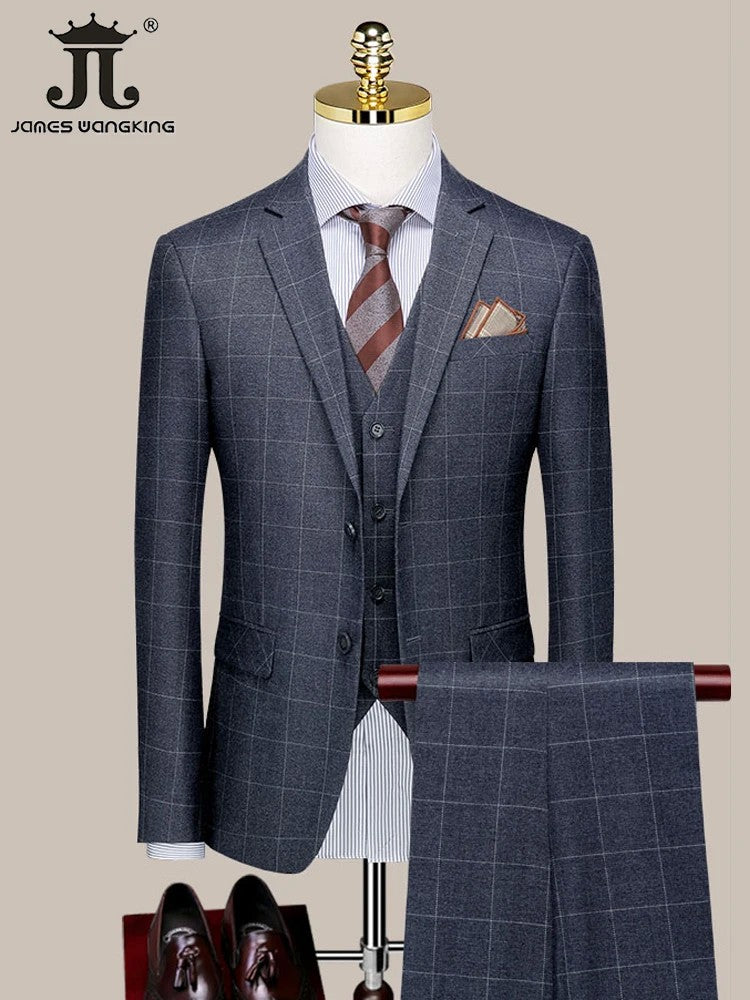 Blazer Vest Pants Luxury High-end Brand Boutique Plaid Casual Business Suit 3 Pcs and 2 Pcs Set Groom Wedding Party Dress Jacket
