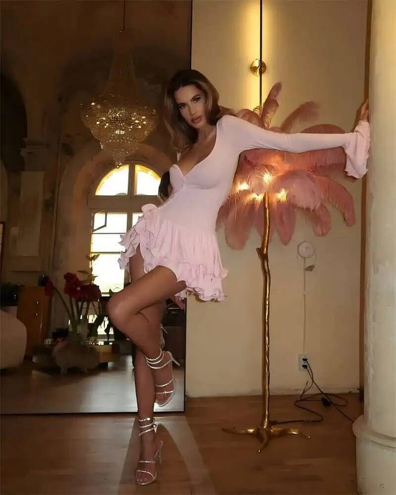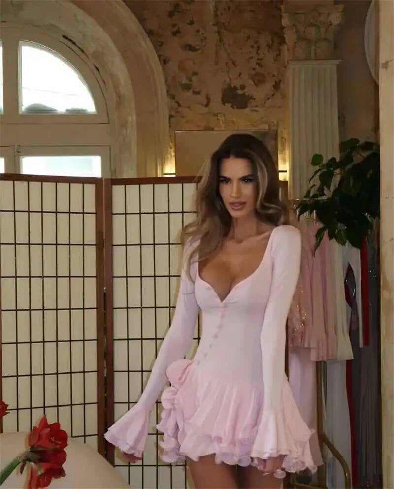 Blifanbo Flare Sleeve Ruffle Sexy V Neck Mini Dress Women Robe Irregular Single-