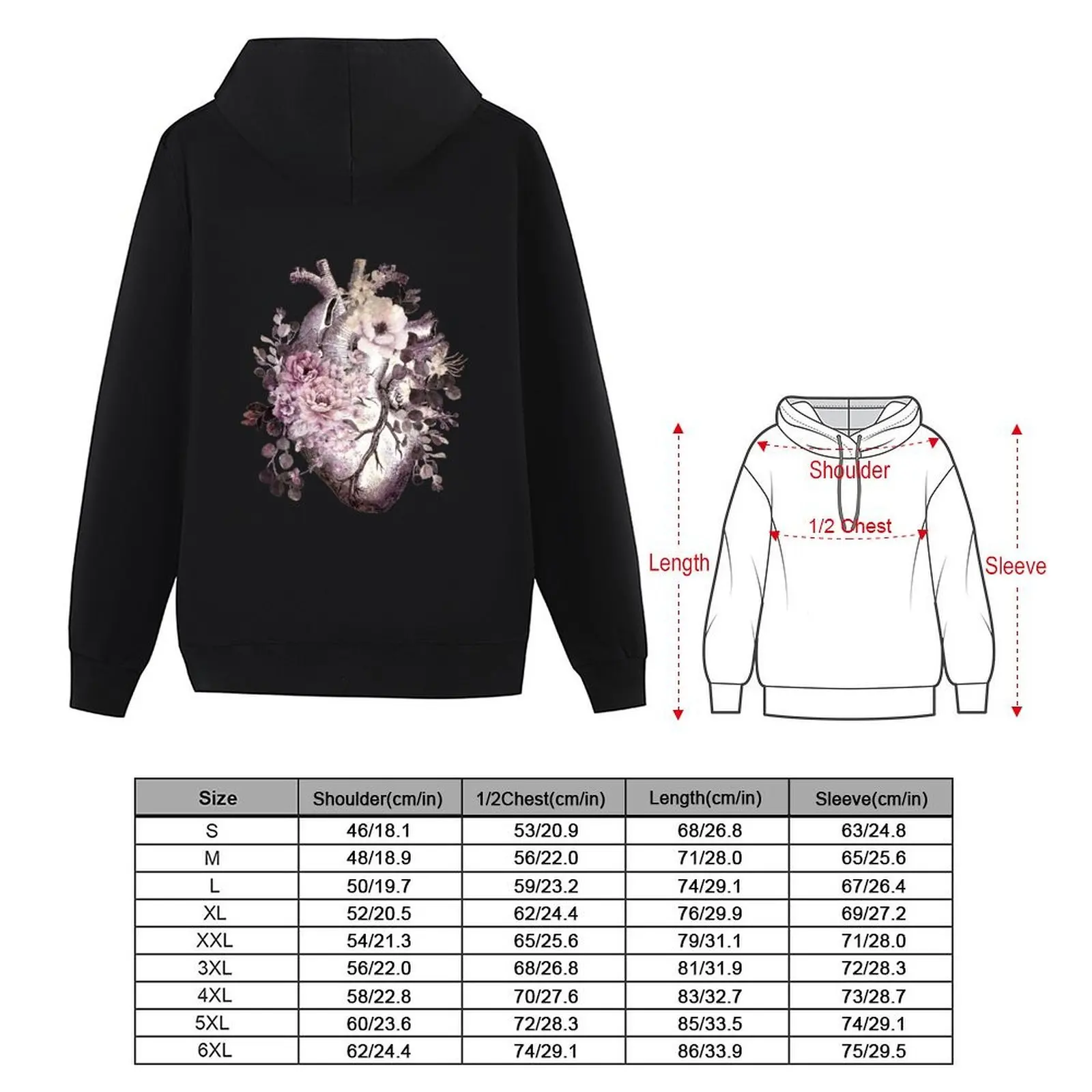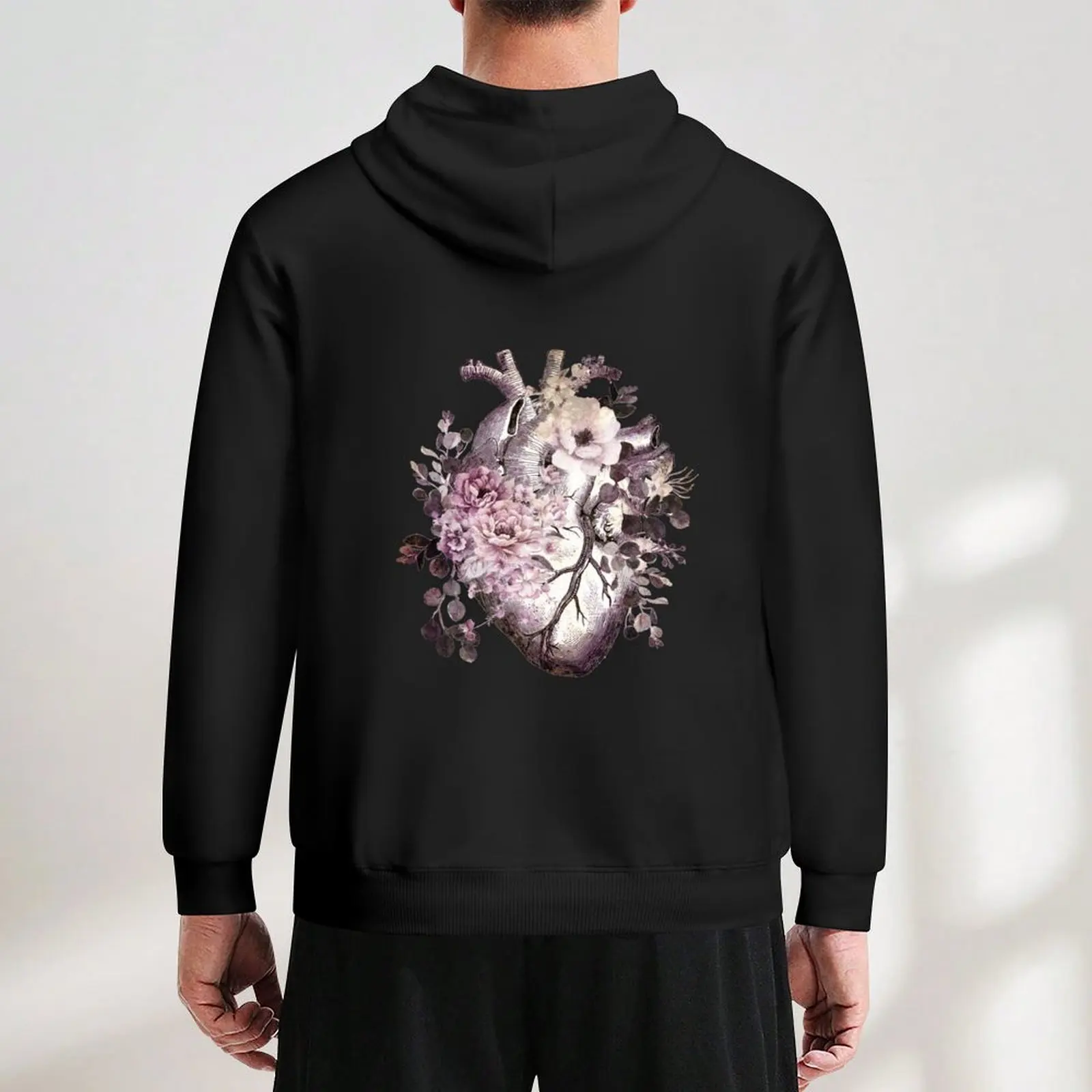 Bloom Floral Heart Human Anatomy pink watercolor style flowers Hoodie fashion men new hooded tee
