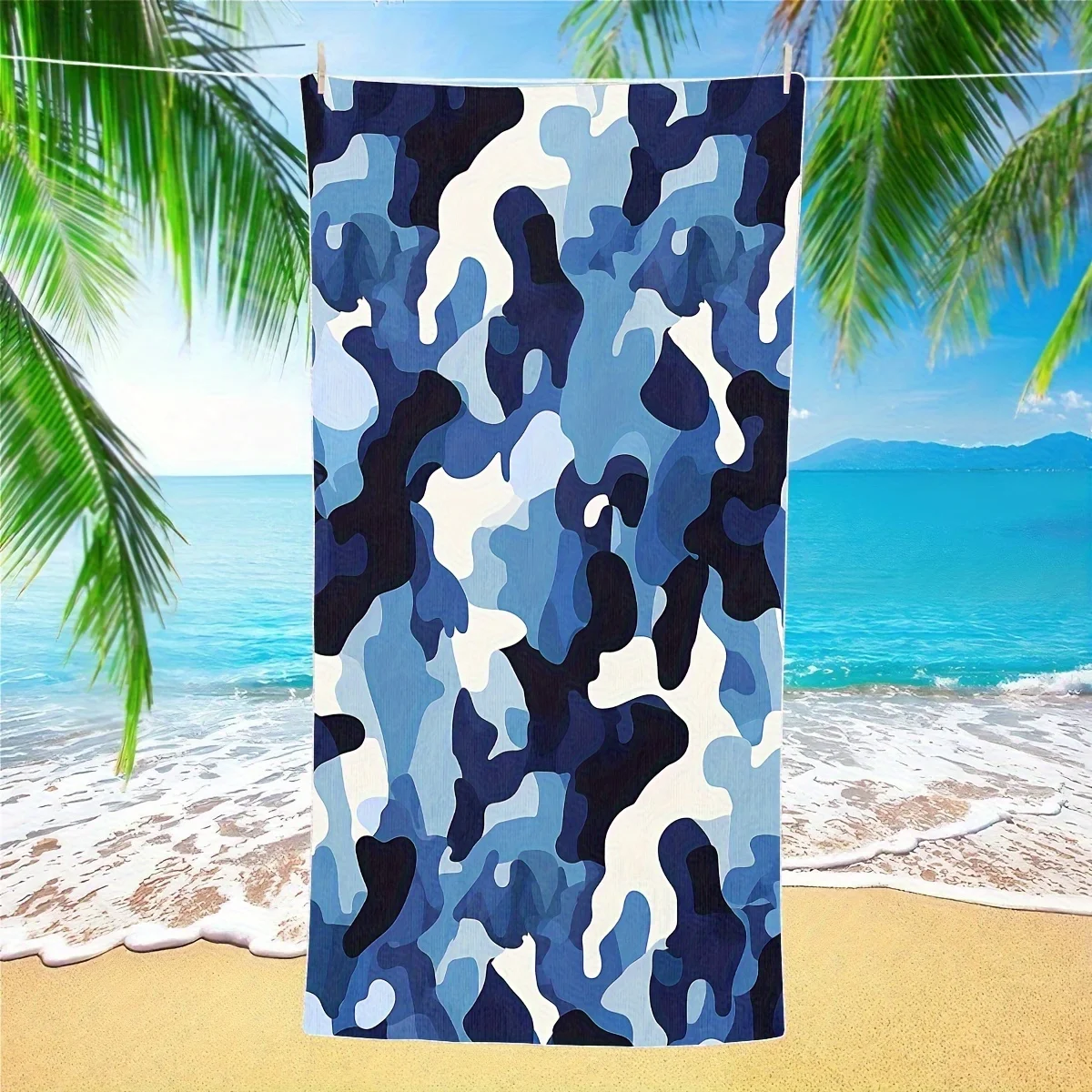 Blue Camo Bath Towel - Stylish Camouflage Design,Soft Absorbent,Perfect for Summer Adventures,Adds Cool Vibes to Your Beach Days