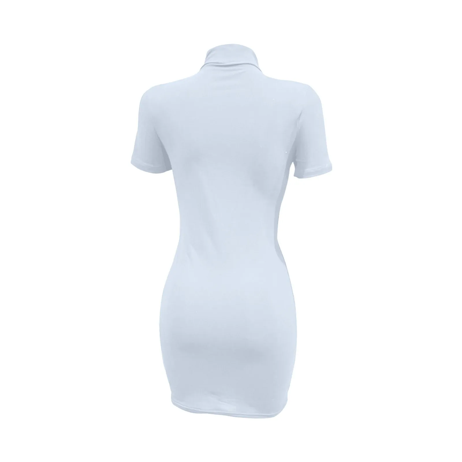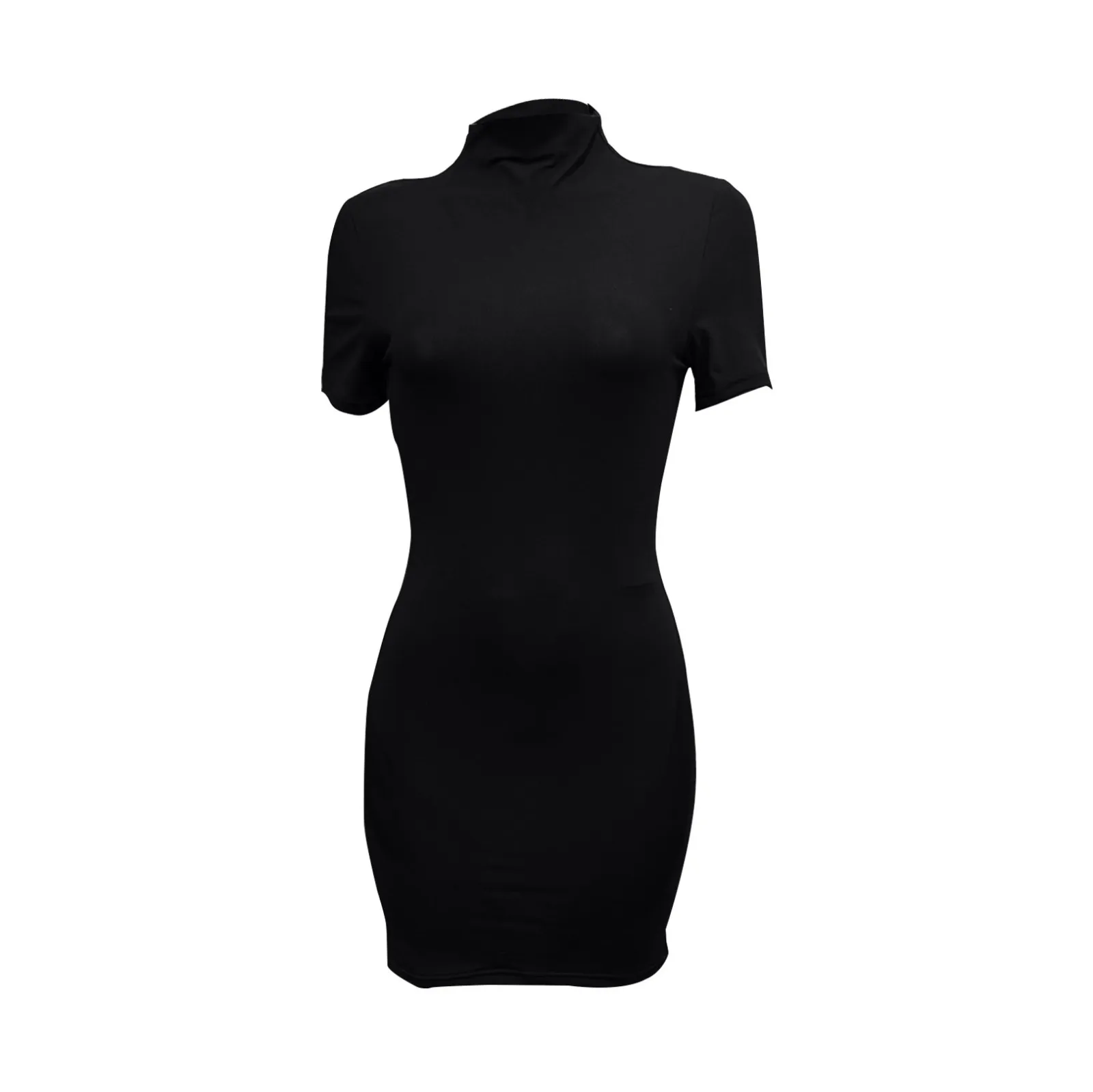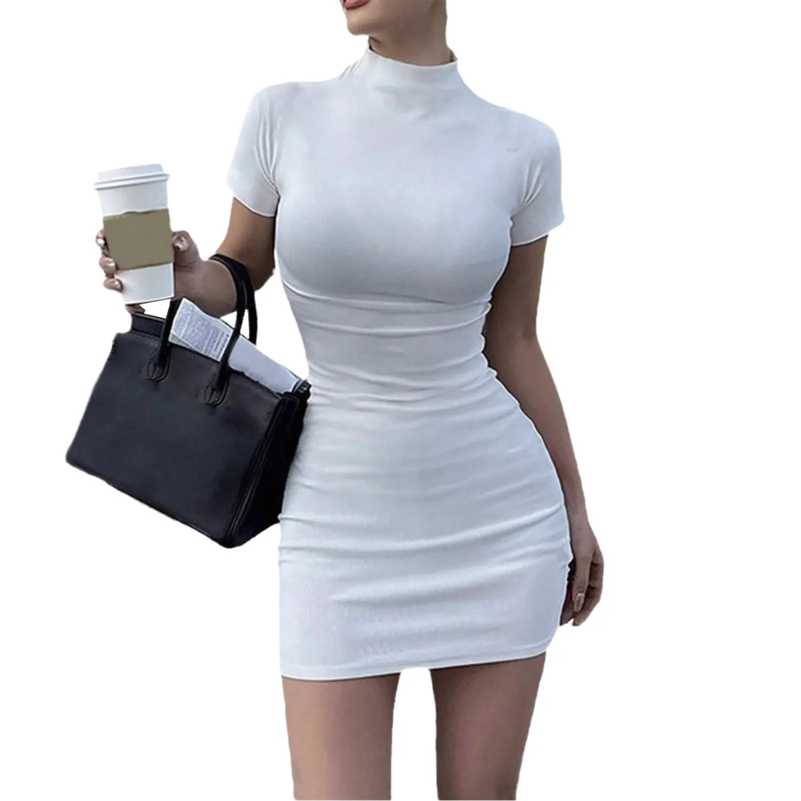 Fashion Solid Color High Collar Short Sleeves Slim Fit Versatile Temperament Short Slim Dress